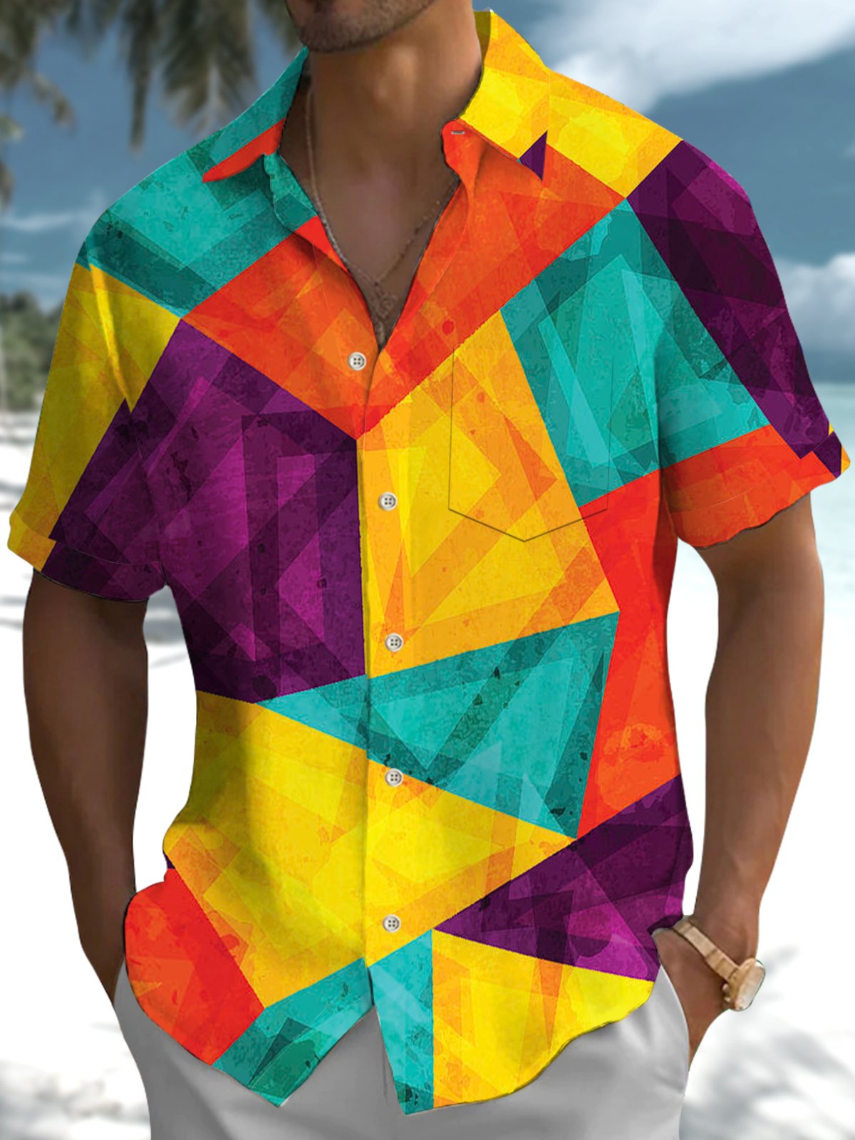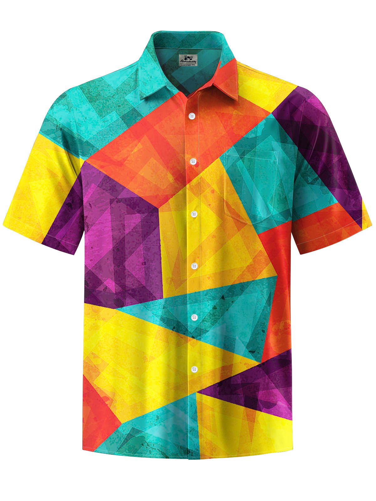 Alohadaddy® Retro Geometric Contrast Art Print Pocket Stretch Men's Short Sleeve Shirt Big & Tall