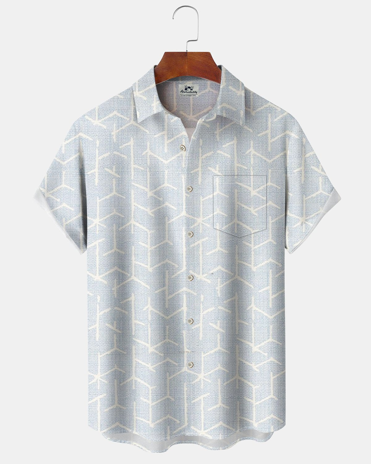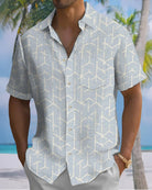 Alohadaddy® Retro Geometric Print Art Pocket Button Stretch Men's Short Sleeve Shirt Big & Tall