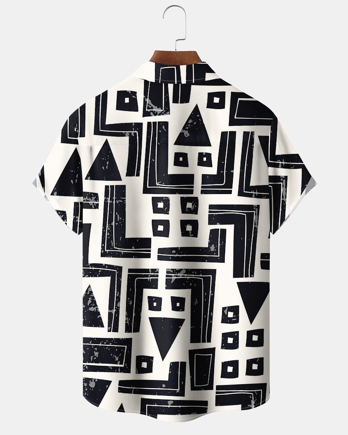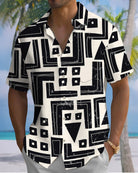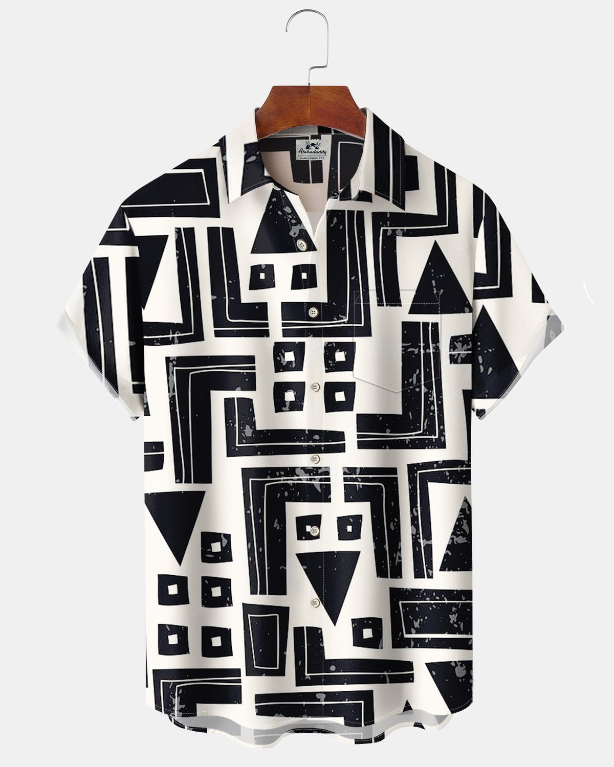 Alohadaddy® Retro Geometric Print Art Pocket Button Stretch Men's Short-Sleeve Shirt Big & Tall