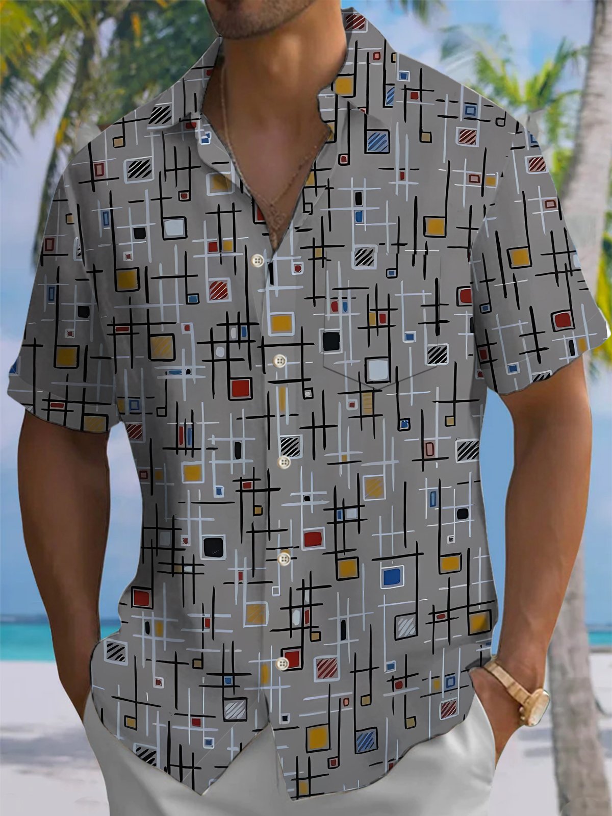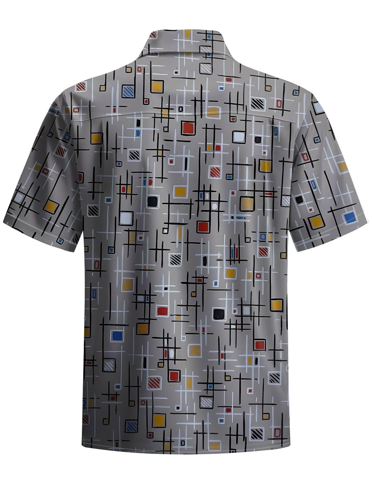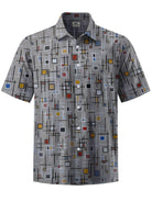 Alohadaddy® Retro Geometric Print Stretch Pocket Button Men's Short Sleeve Shirt Big & Tall