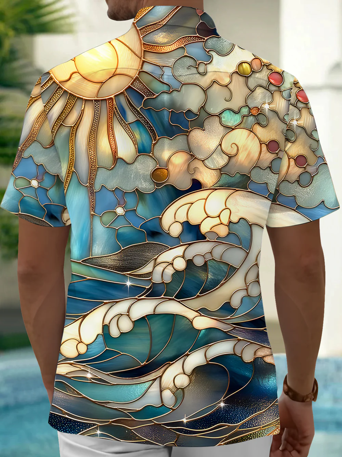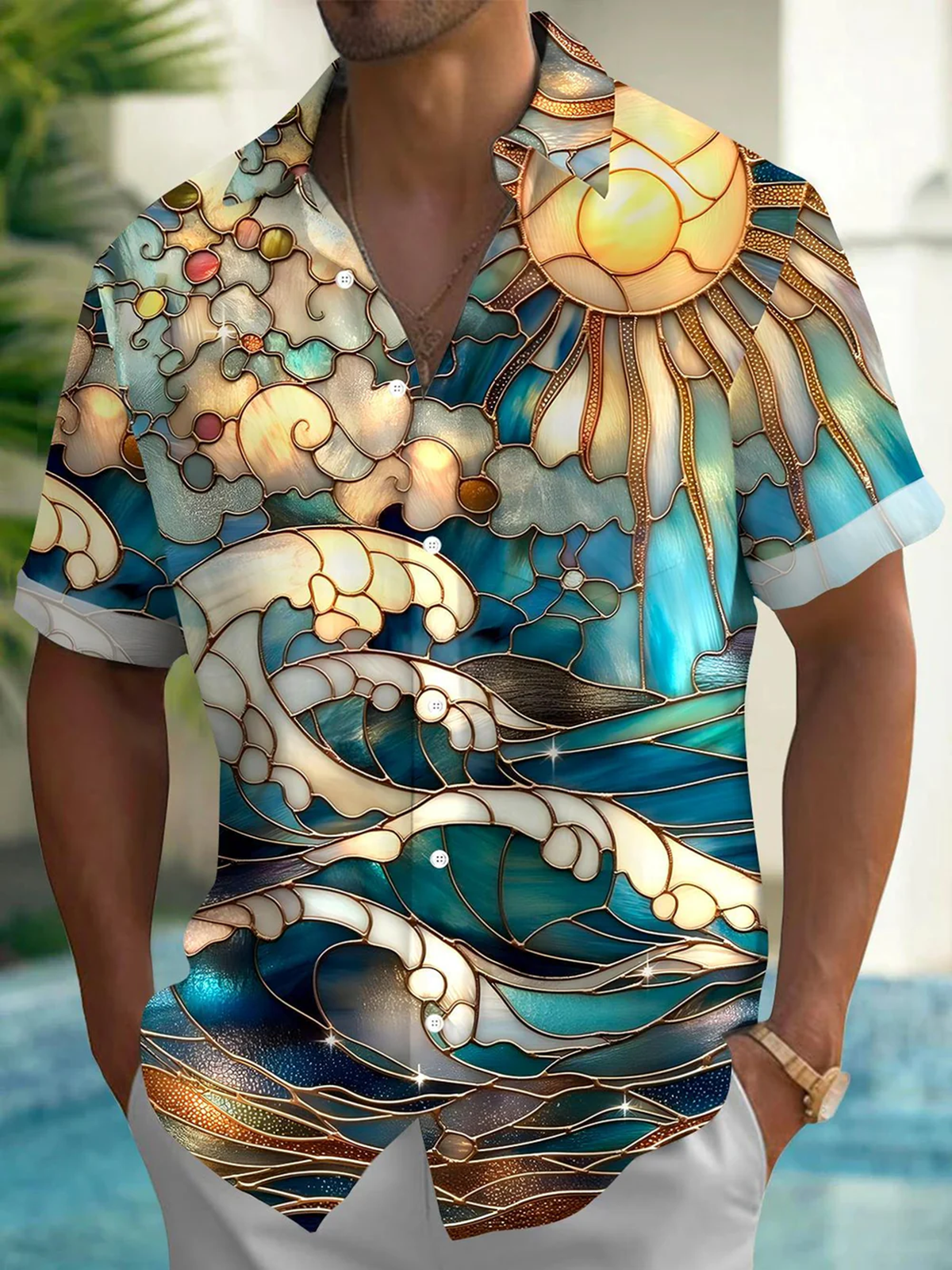 Alohadaddy® Retro Wave Geometric Art Print Chest Pocket Men's Short Sleeve Shirt Big & Tall