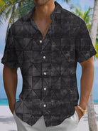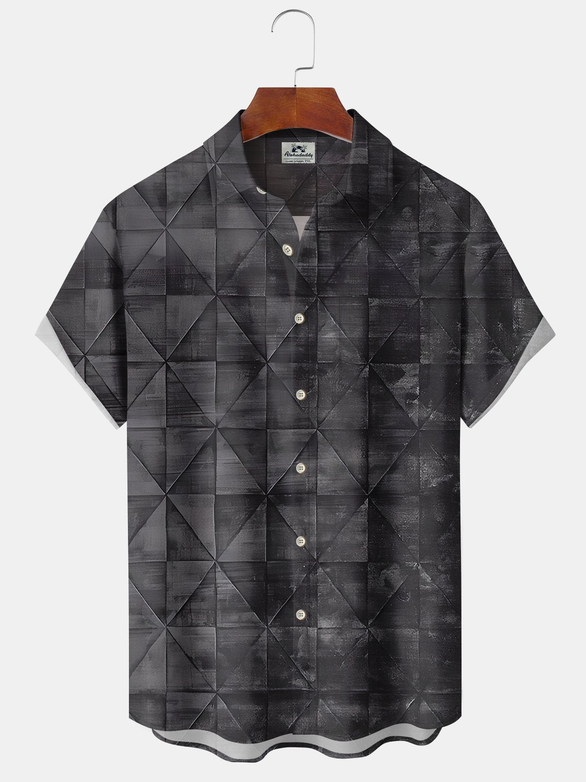 Alohadaddy Casual Collection Daily Geometric Triangle Print Art Button Cardigan Pocket Polyester Stretch Short Sleeve Shirt