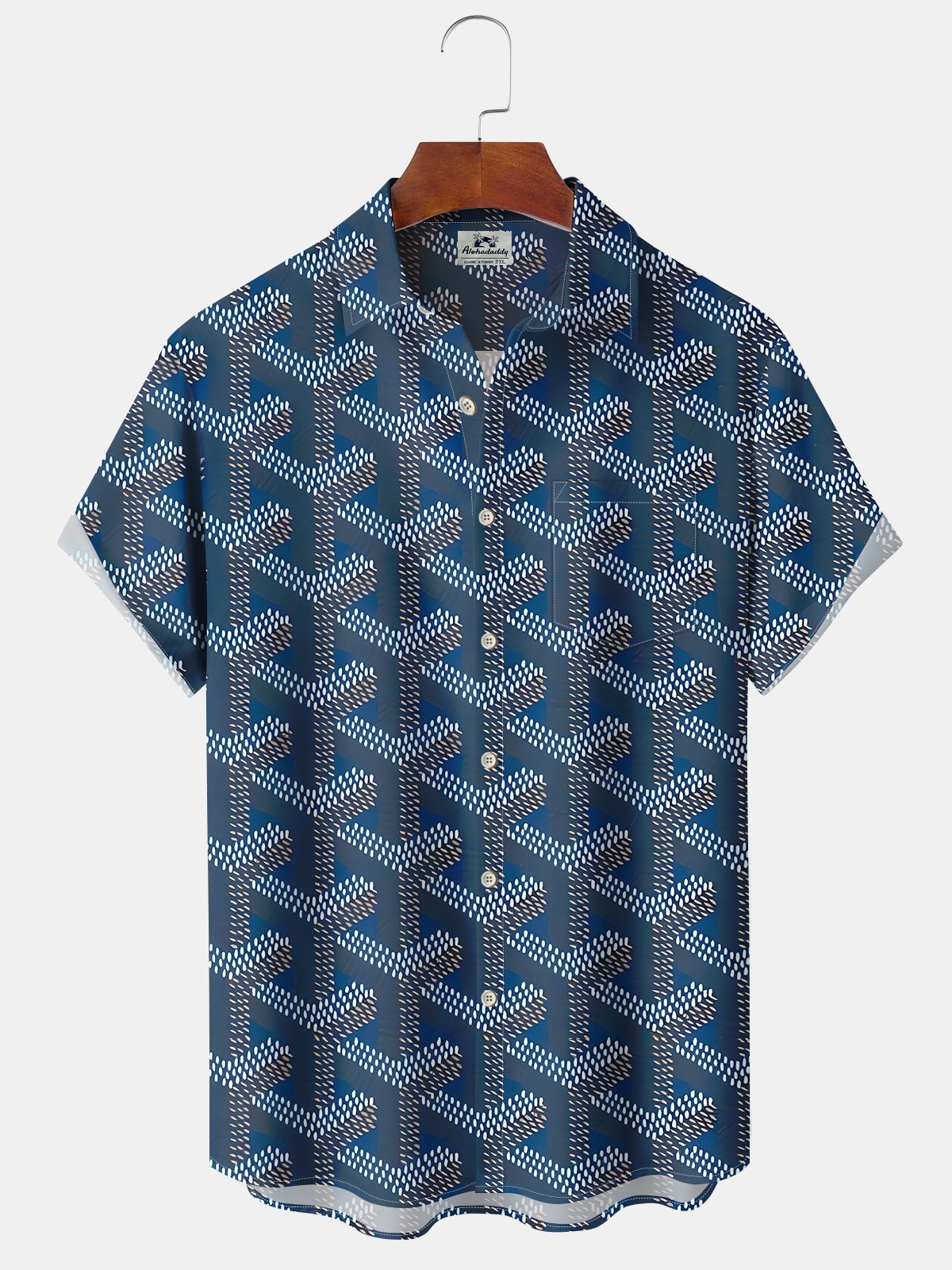 Alohadaddy Casual Collection Geometric Print Art Button Cardigan Pockets Fresh Stretch Polyester Short Sleeve Shirt