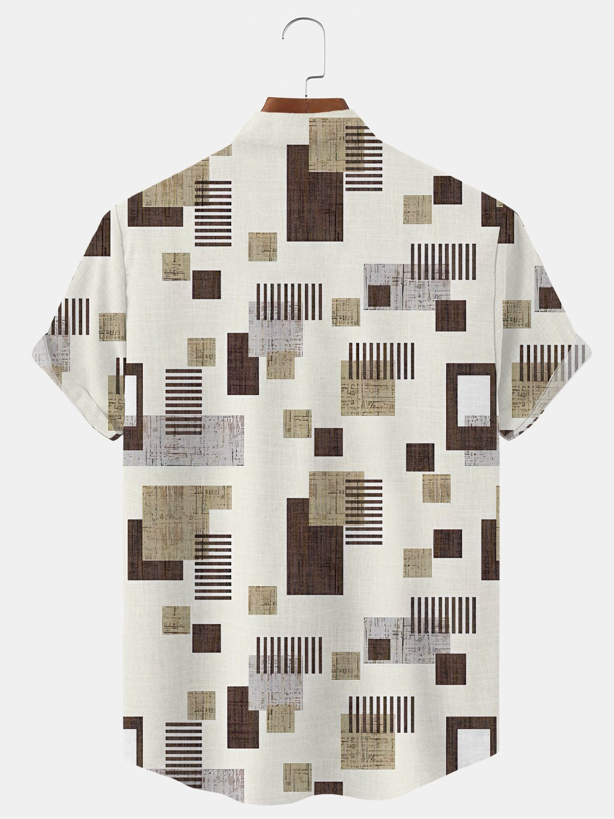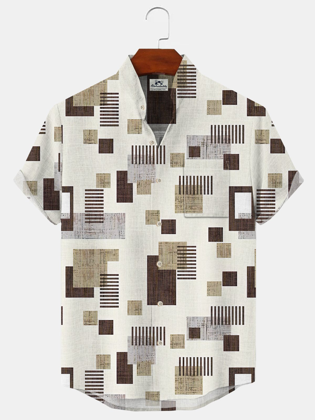 Alohadaddy Geometric Button Pocket Casual Short Sleeve Stand Collar Shirt