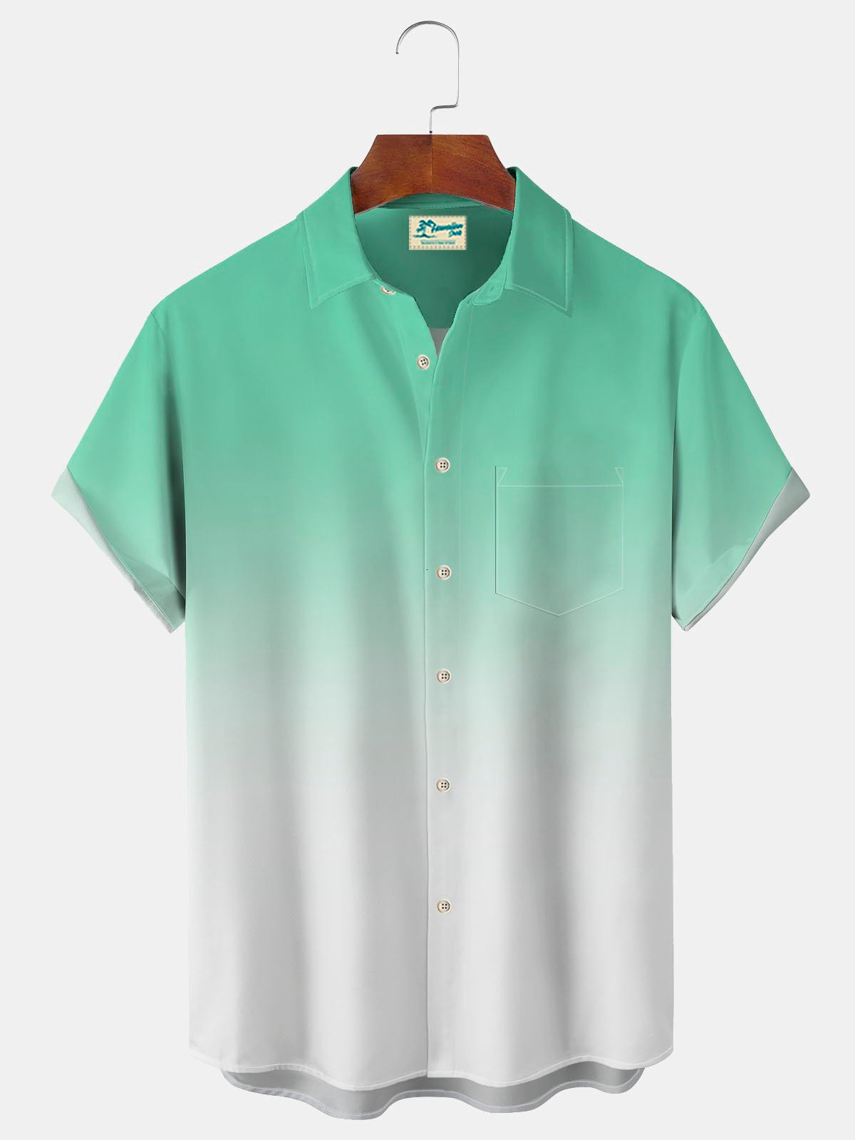 Alohadaddy Hawaiian Green Gradient Men's Button Pocket Shirt