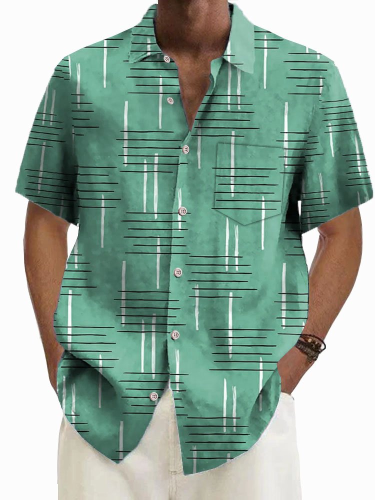 Alohadaddy Retro Geometric Print Men's Button Pocket Short Sleeve Shirt