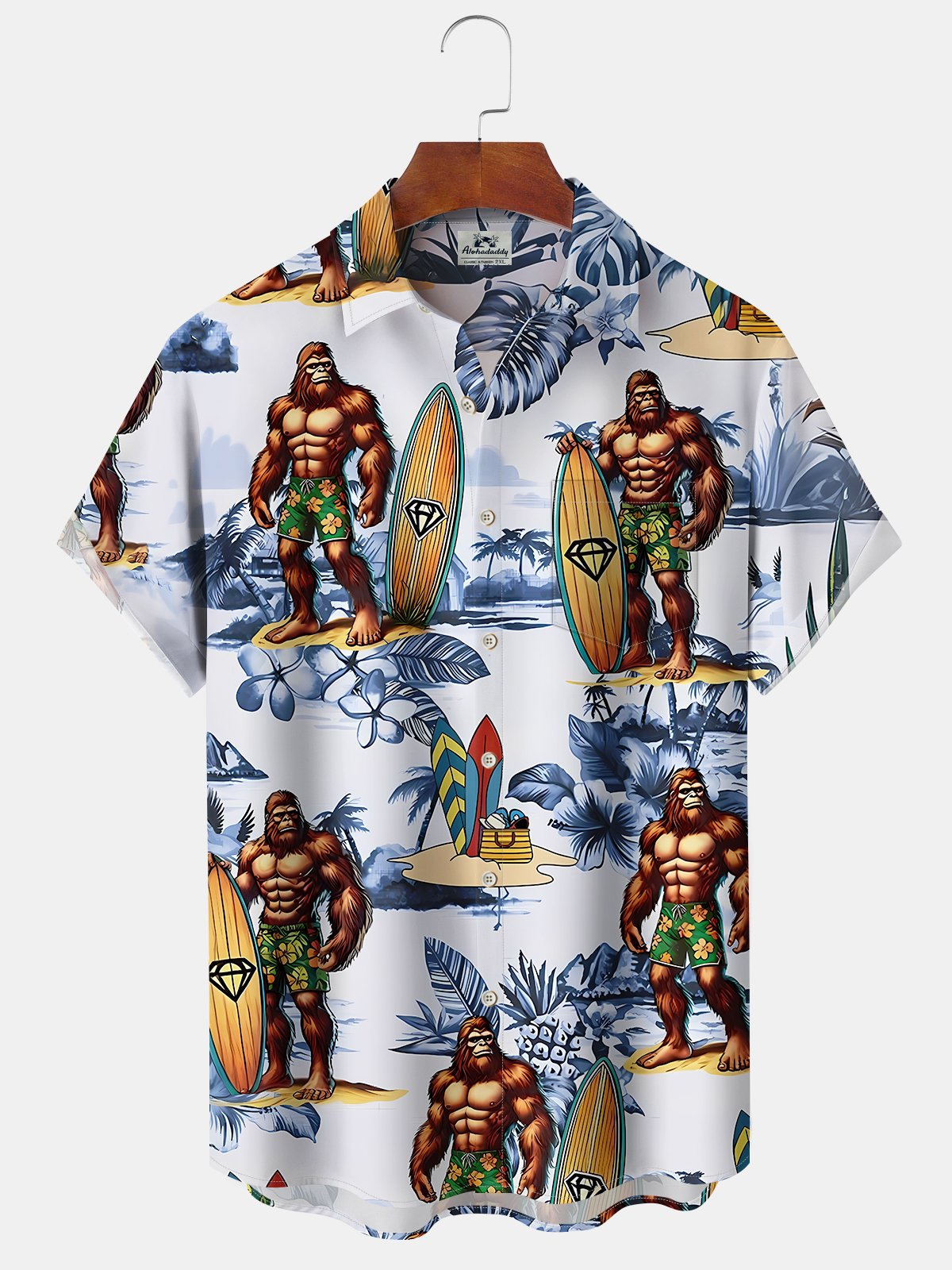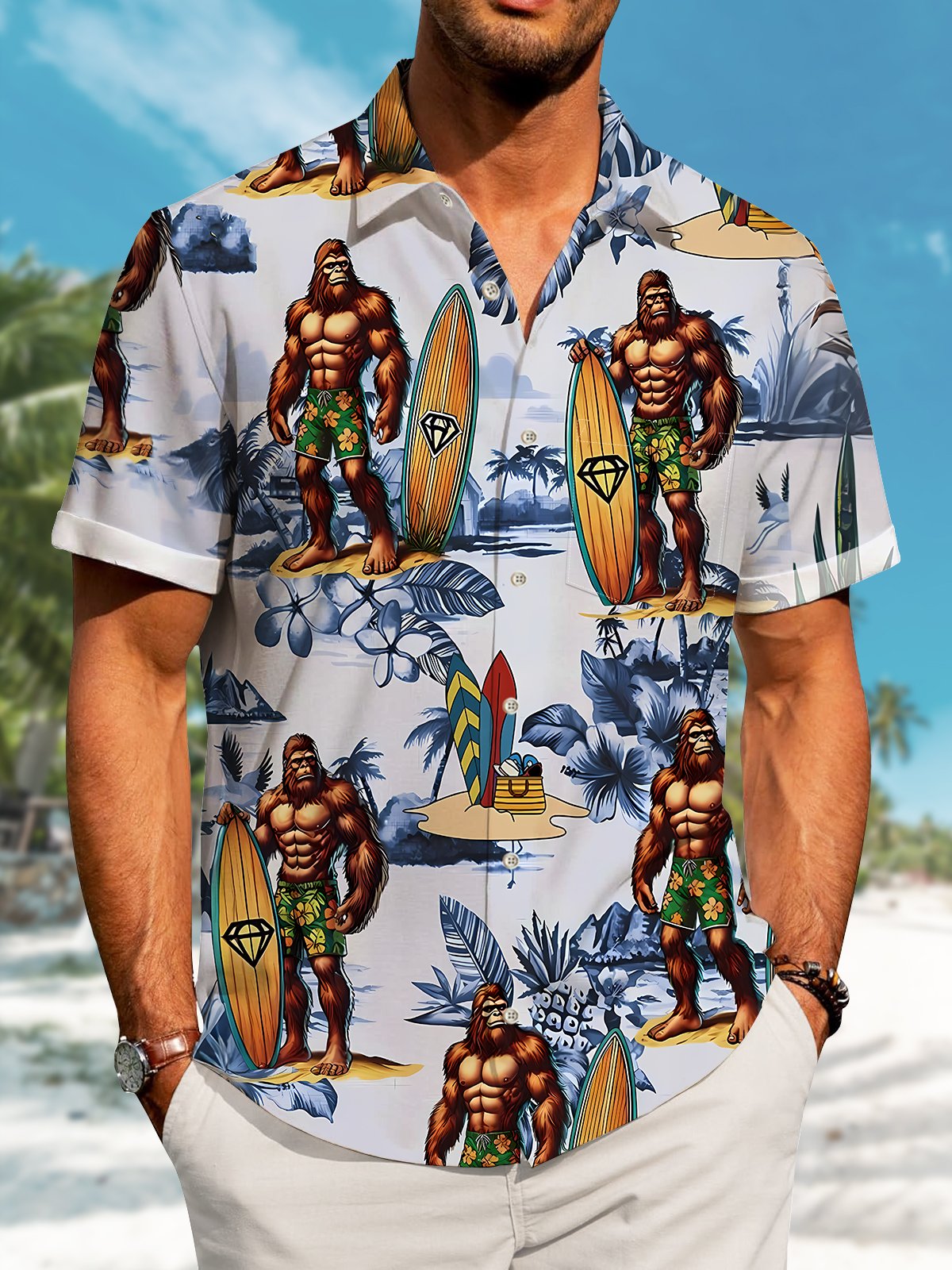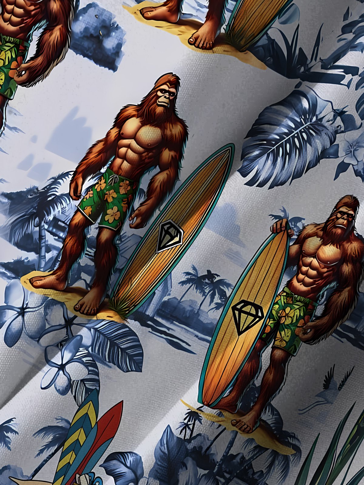 Alohadaddy Hawaii Bigfoot Print Art Buttons Stretch Large Size Men's Shirt