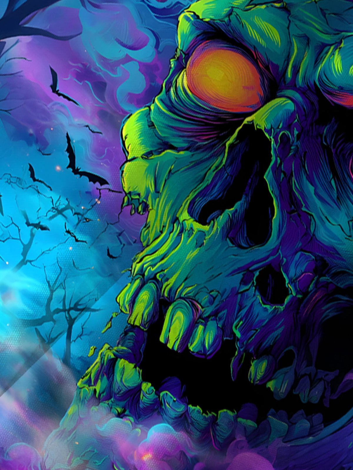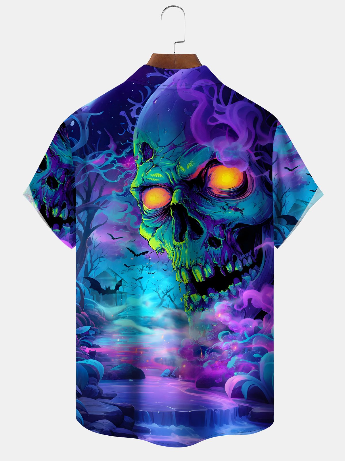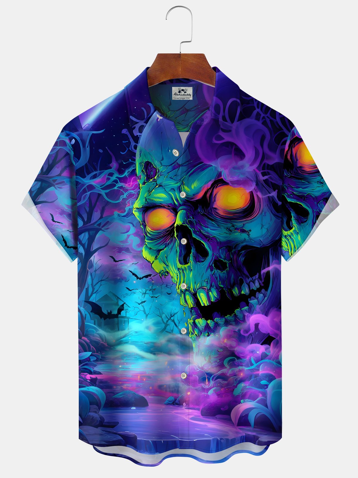 Alohadaddy® Halloween Abstract Skull Gradient Bat Stretch Pocket Shirt