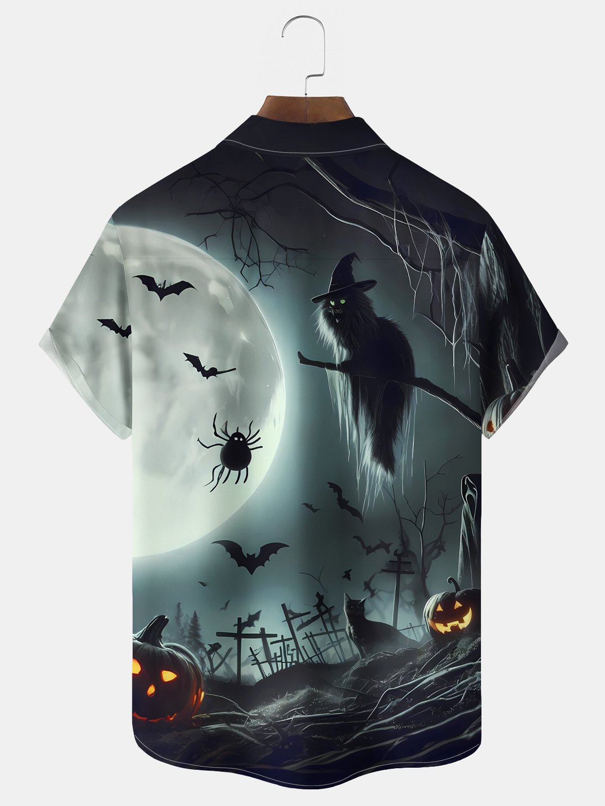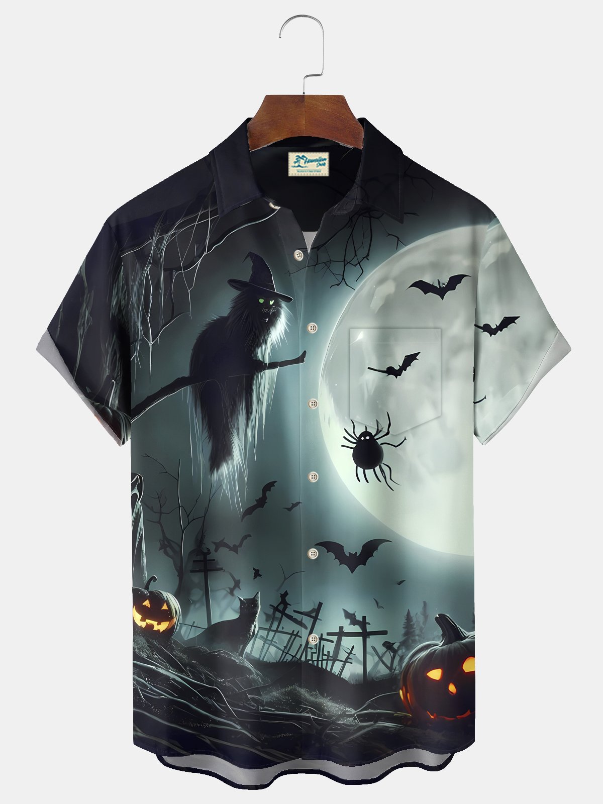 Alohadaddy® Halloween Cat Print Casual Stylish Hawaiian Shirt Summer Shirts Pocket Short Sleeve Shirt Big Tall