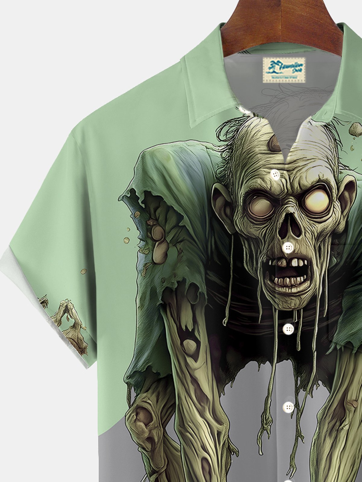 Alohadaddy® Halloween Plants vs. Zombies Dislocation Visual Print Men's Large Size Button Pocket Short Sleeve Shirt Big & Tall