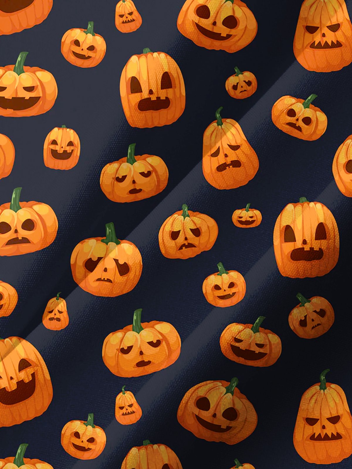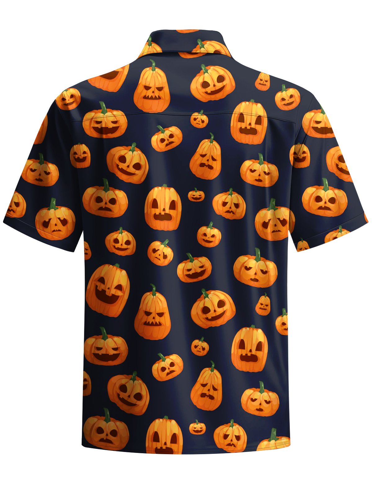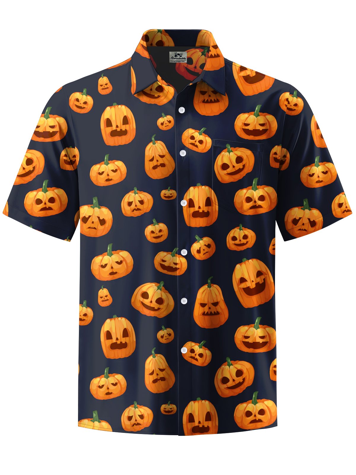 Alohadaddy® Halloween Pumpkin Art Print Chest Pocket Men's Stretch Short Sleeve Shirt Big & Tall