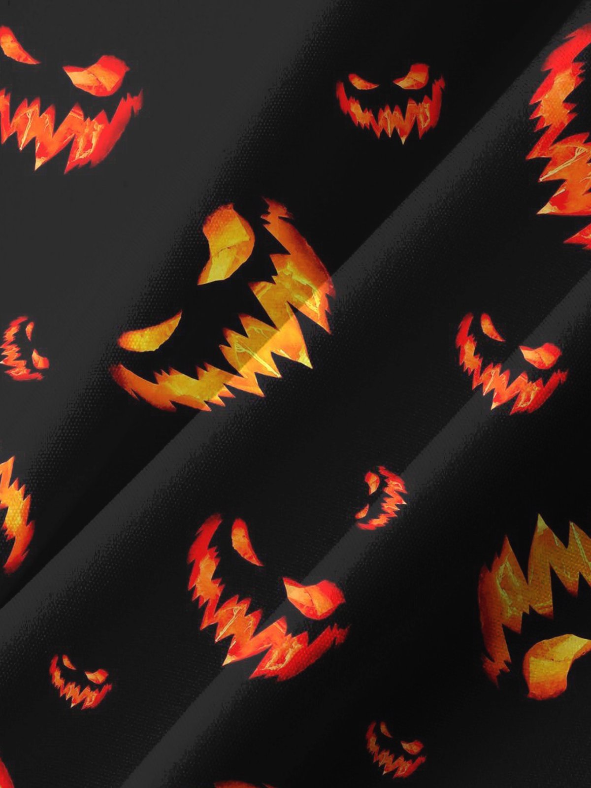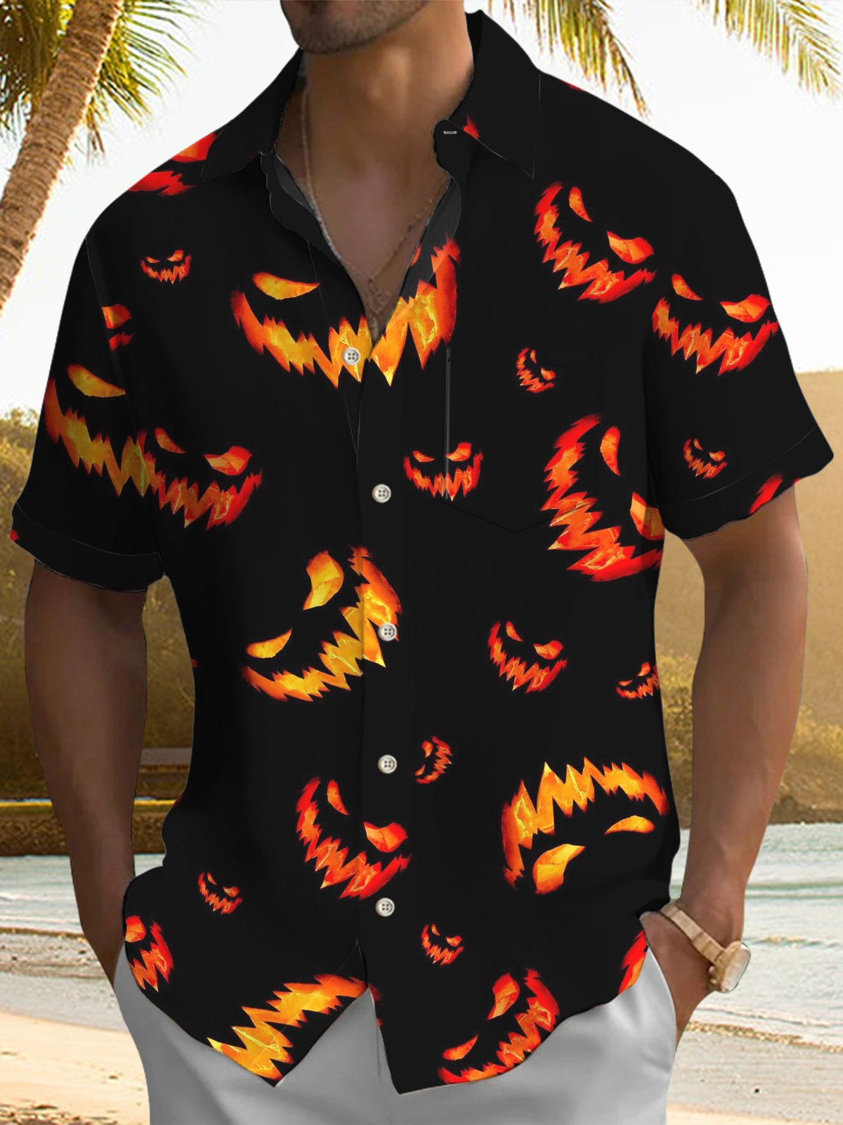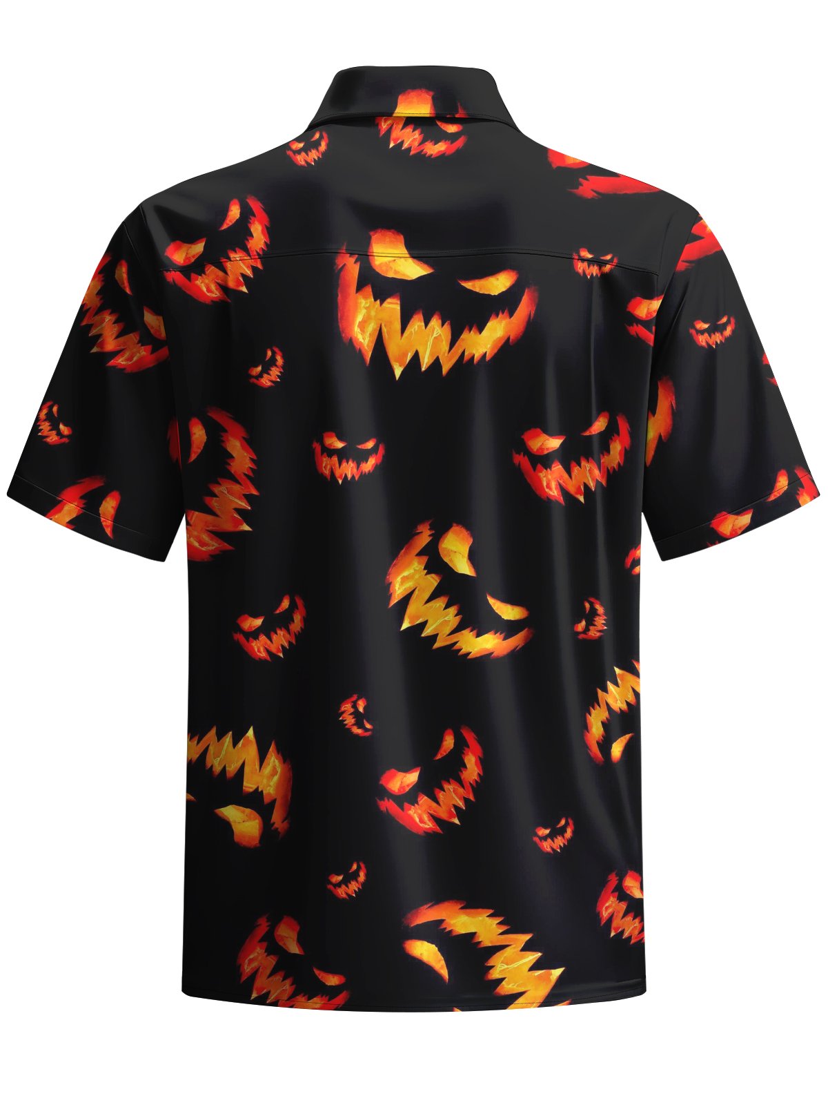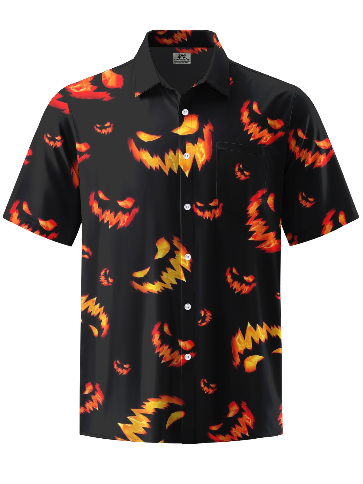 Alohadaddy® Halloween Pumpkin Monster Printed Artwork Chest Pocket Men's Stretch Short Sleeve Shirt Big & Tall