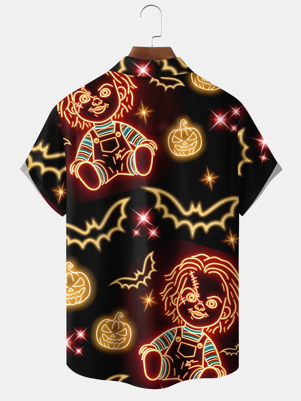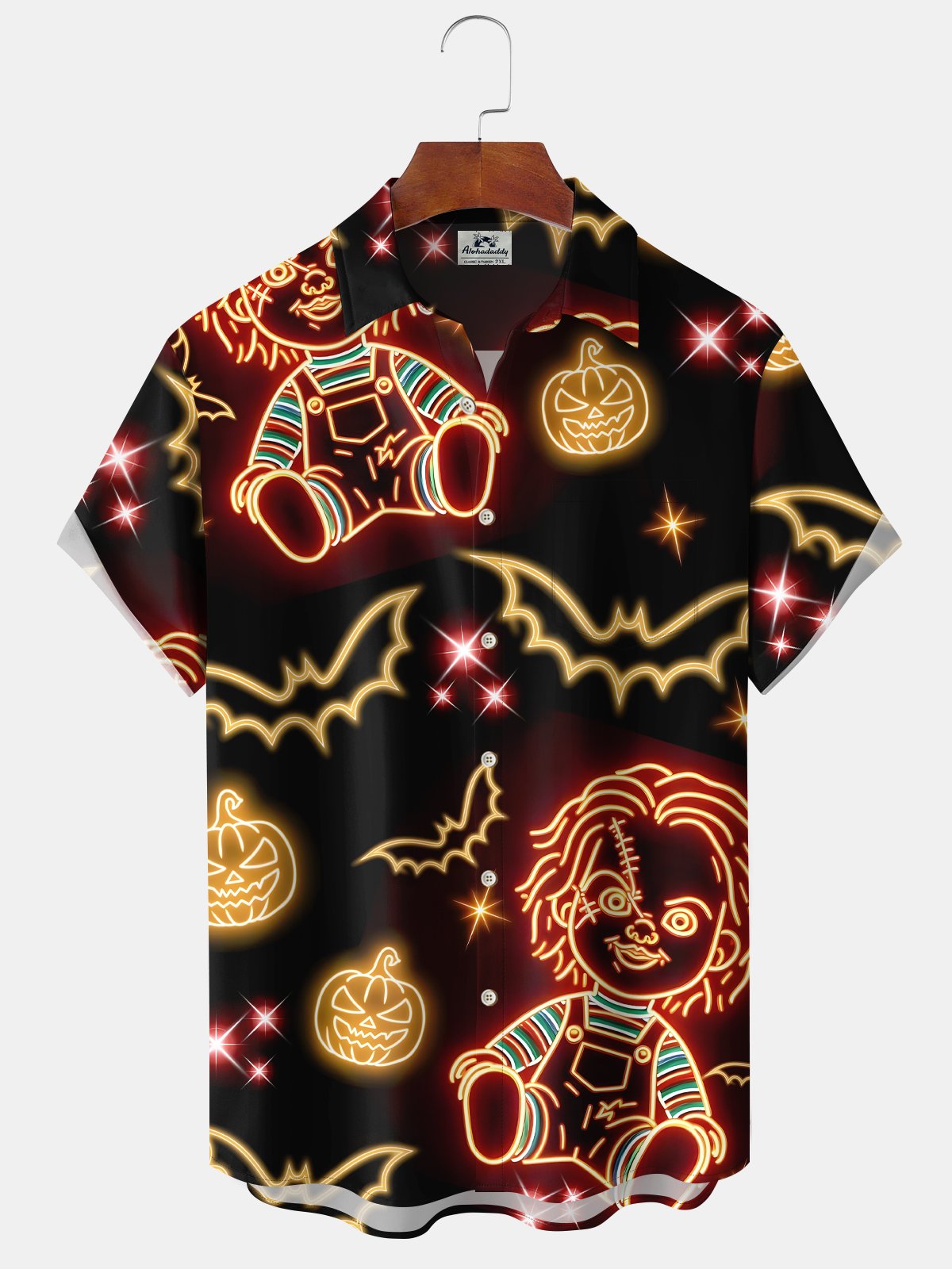 Alohadaddy® Halloween Retro Movie Doll Neon Holiday Stretch Pocket Shirt