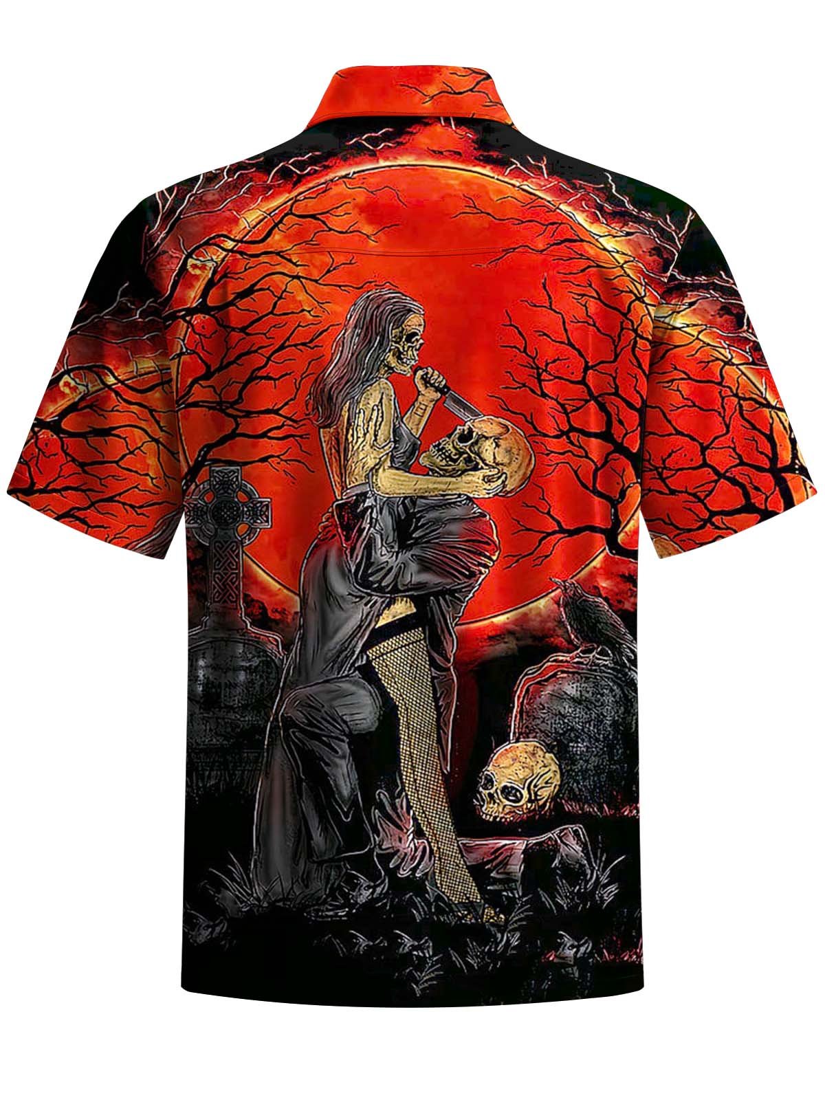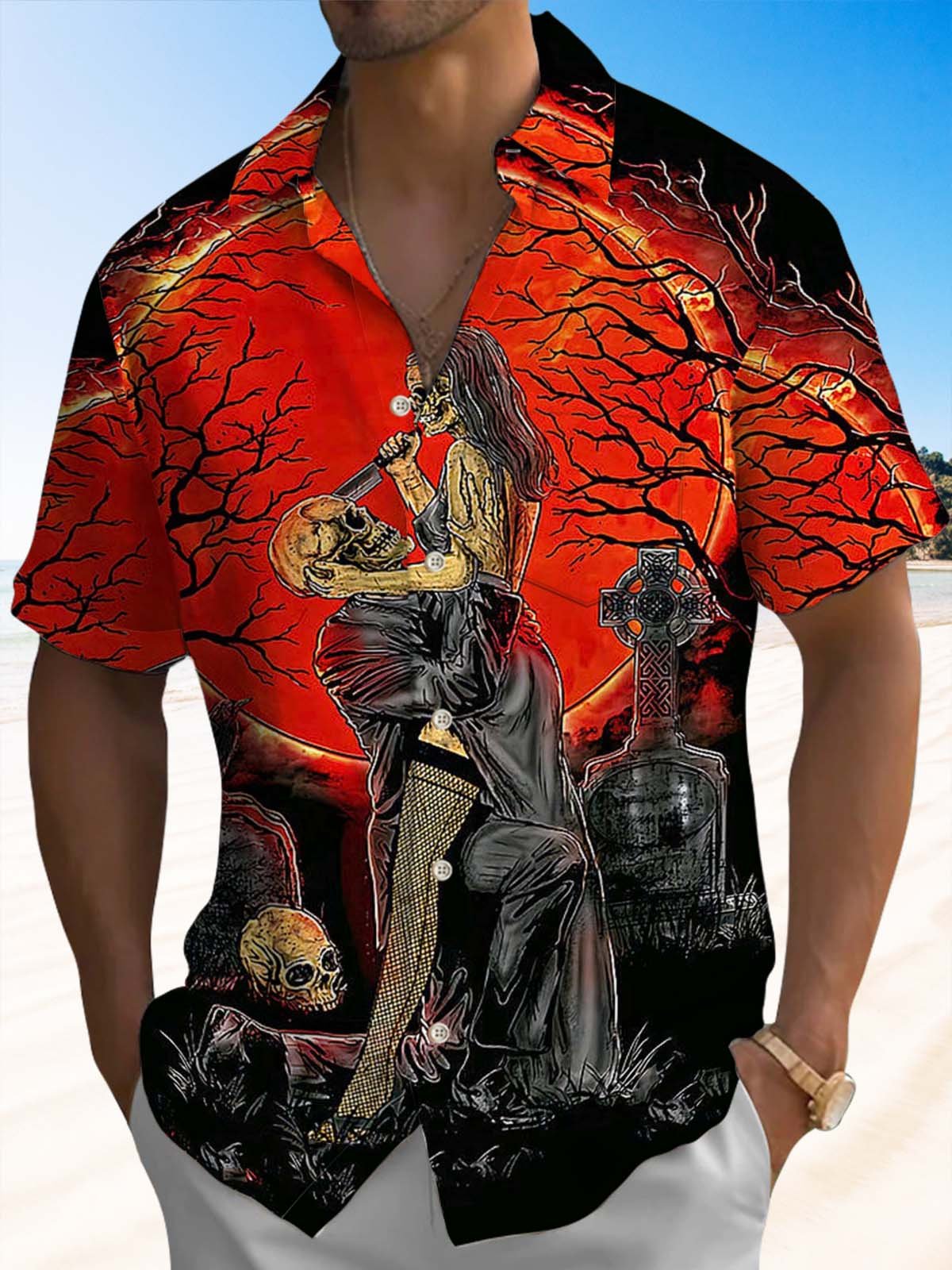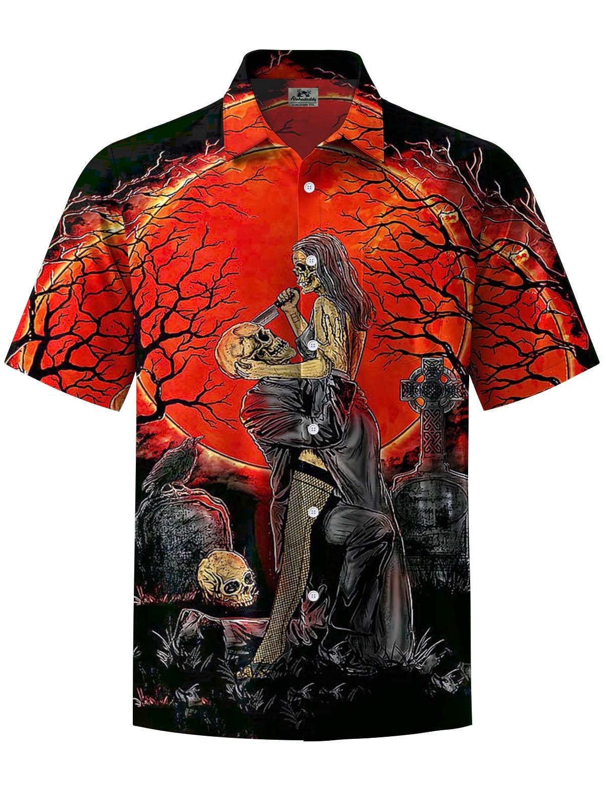 Alohadaddy® Halloween Skull Art Print Chest Pocket Men's Short Sleeve Shirt Big & Tall
