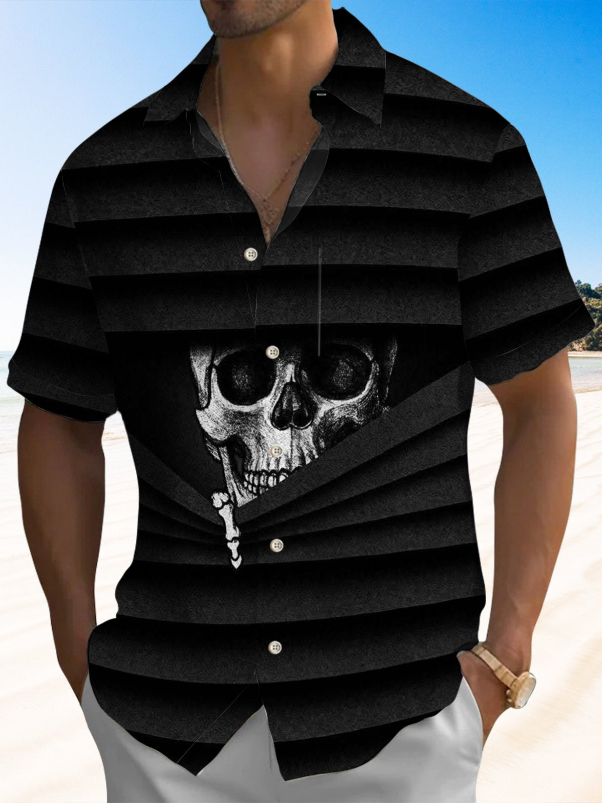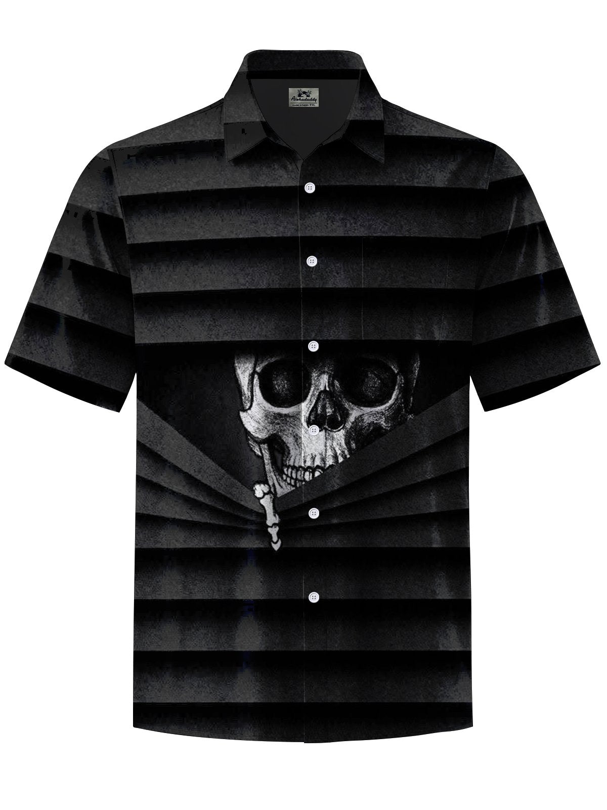 Alohadaddy® Halloween Skull Art Print Chest Pocket Men's Stretch Short Sleeve Shirt Big & Tall
