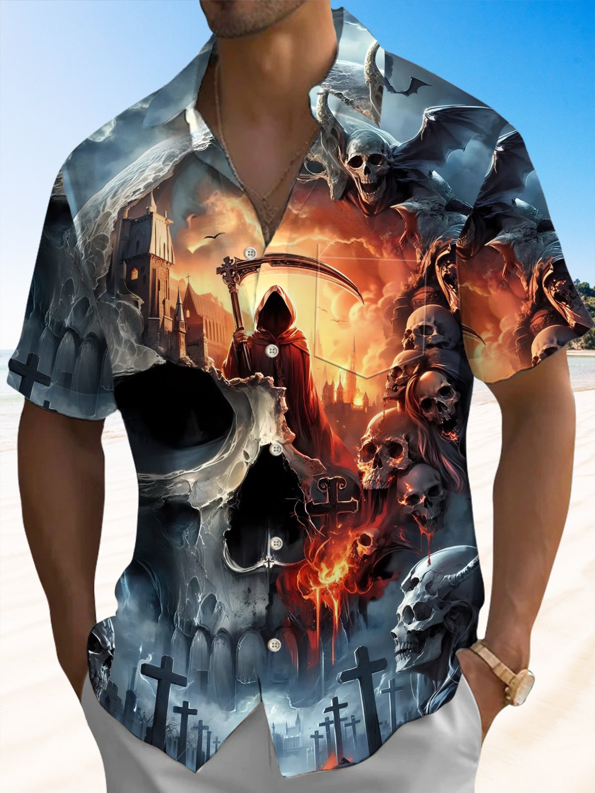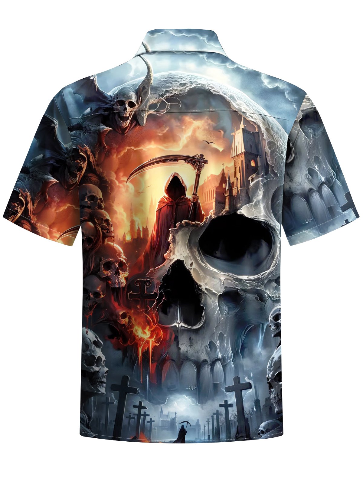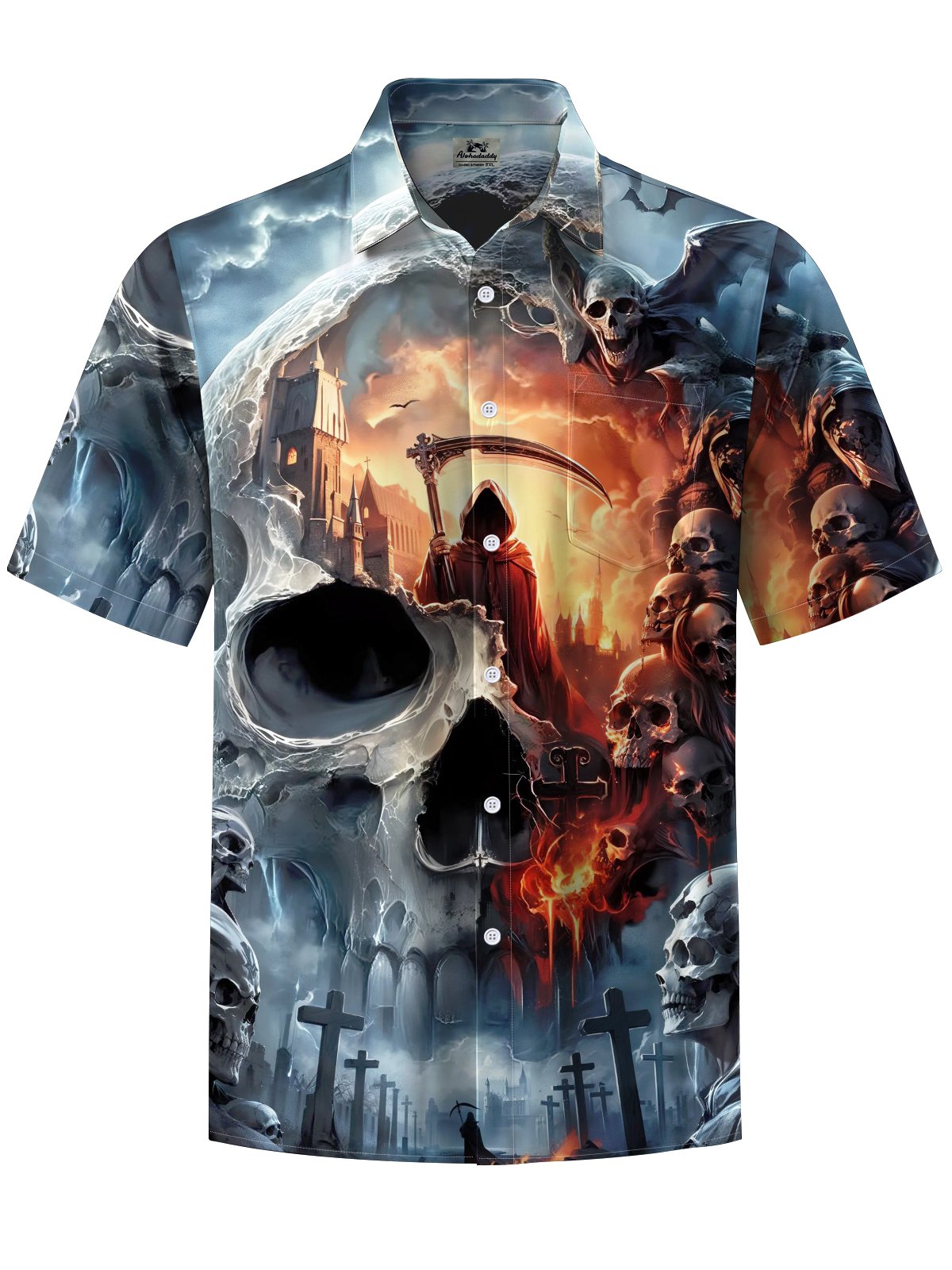 Alohadaddy® Halloween Skull Art Print Stretch Men's Short Sleeve Shirt Big & Tall