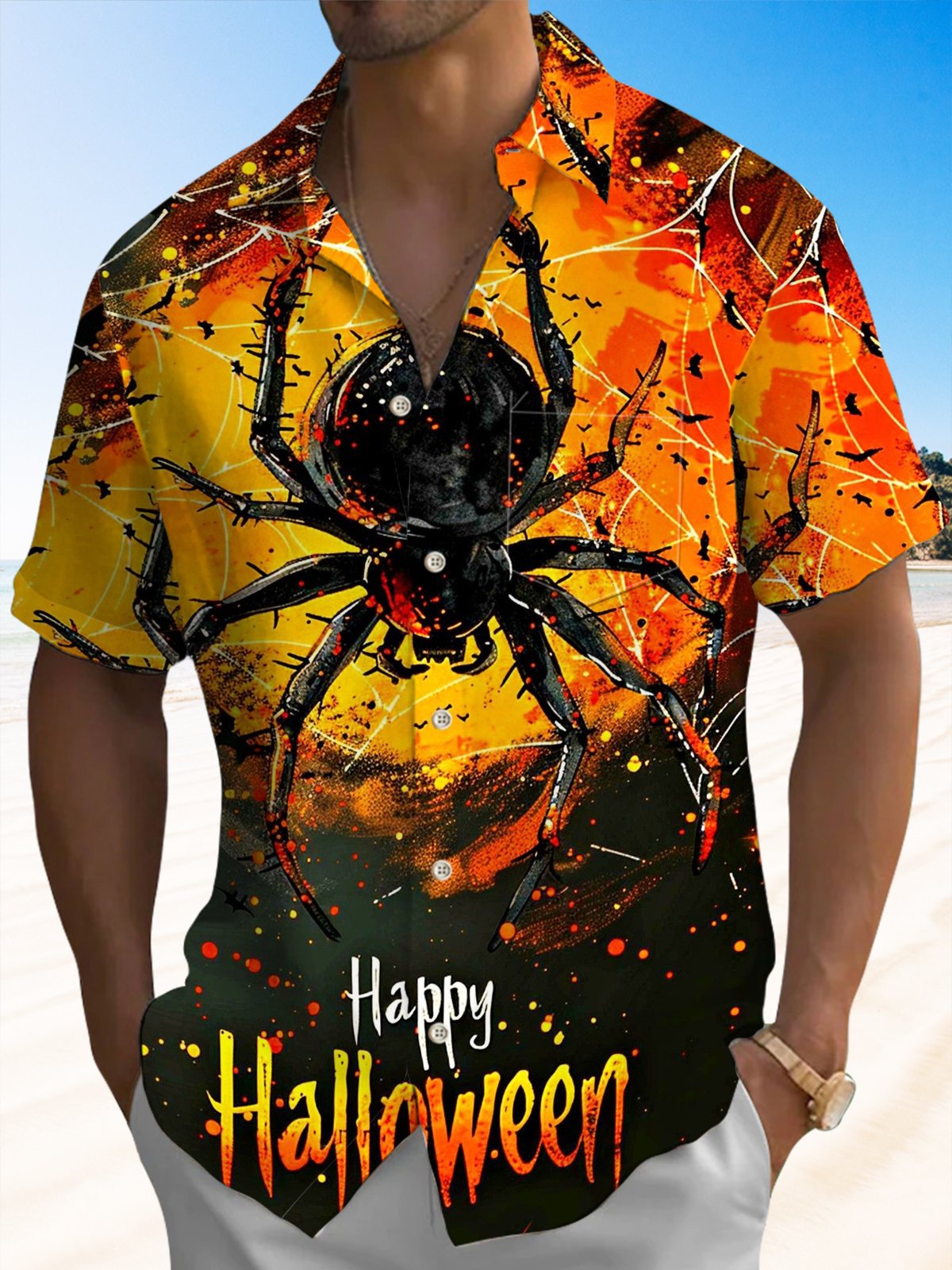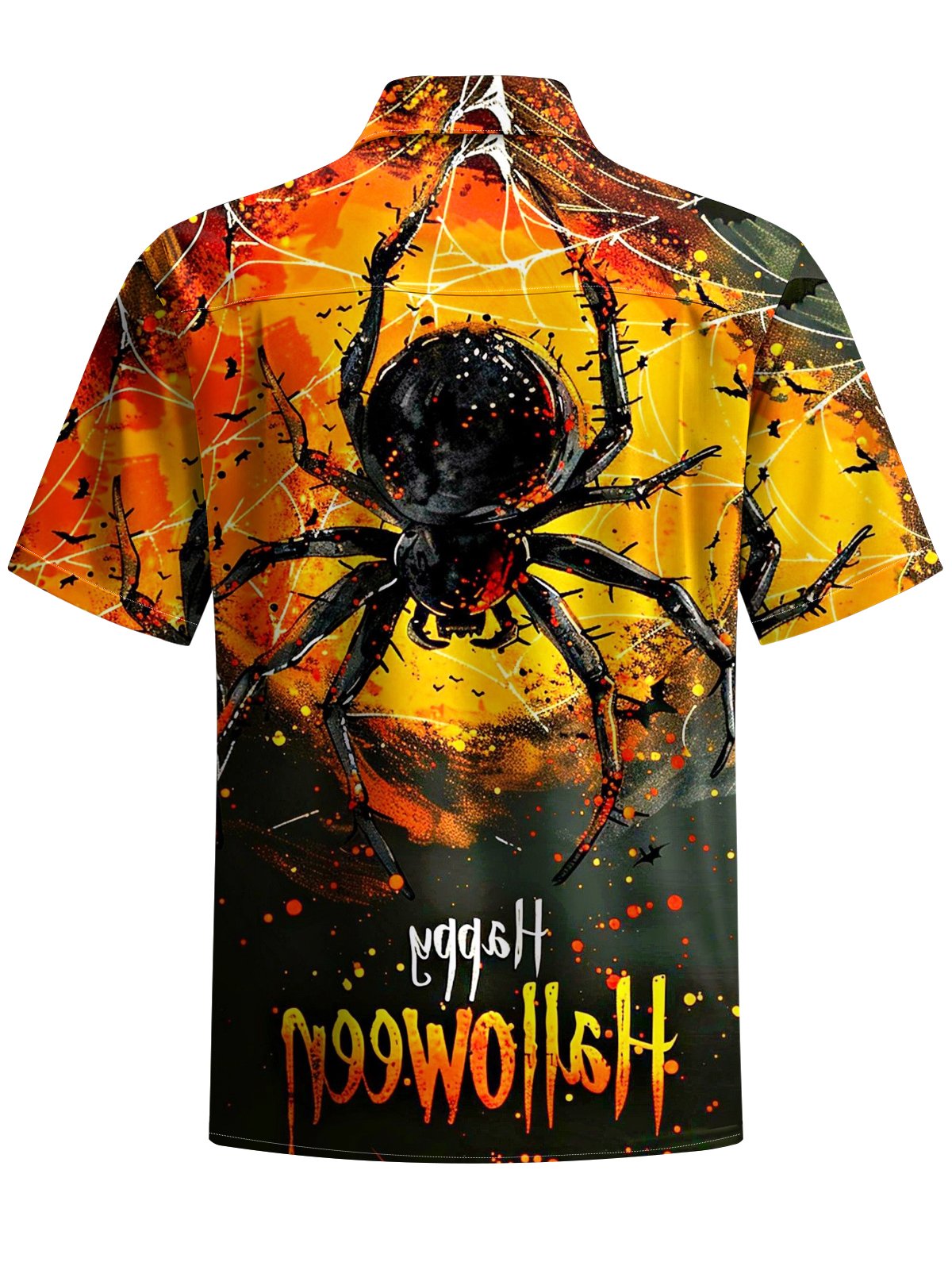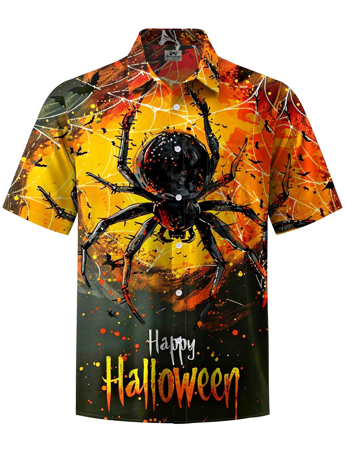 Alohadaddy® Halloween Spider Art Print Stretch Men's Short Sleeve Shirt Big & Tall