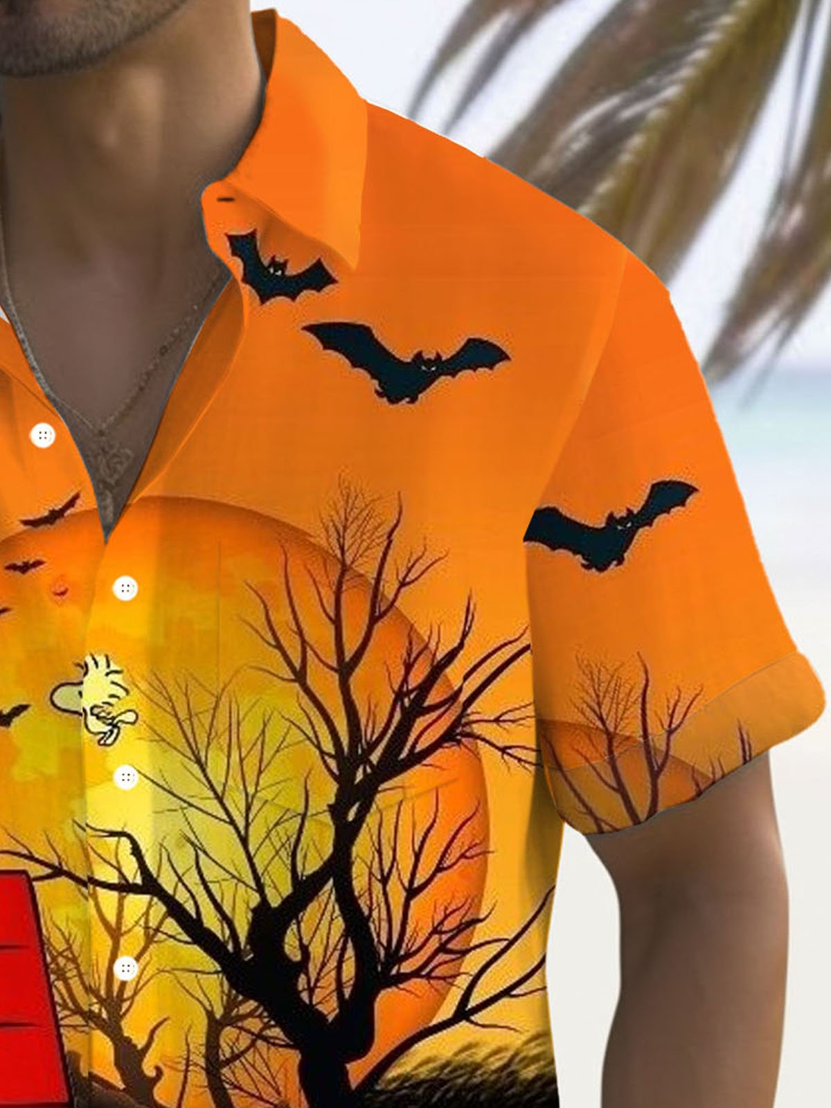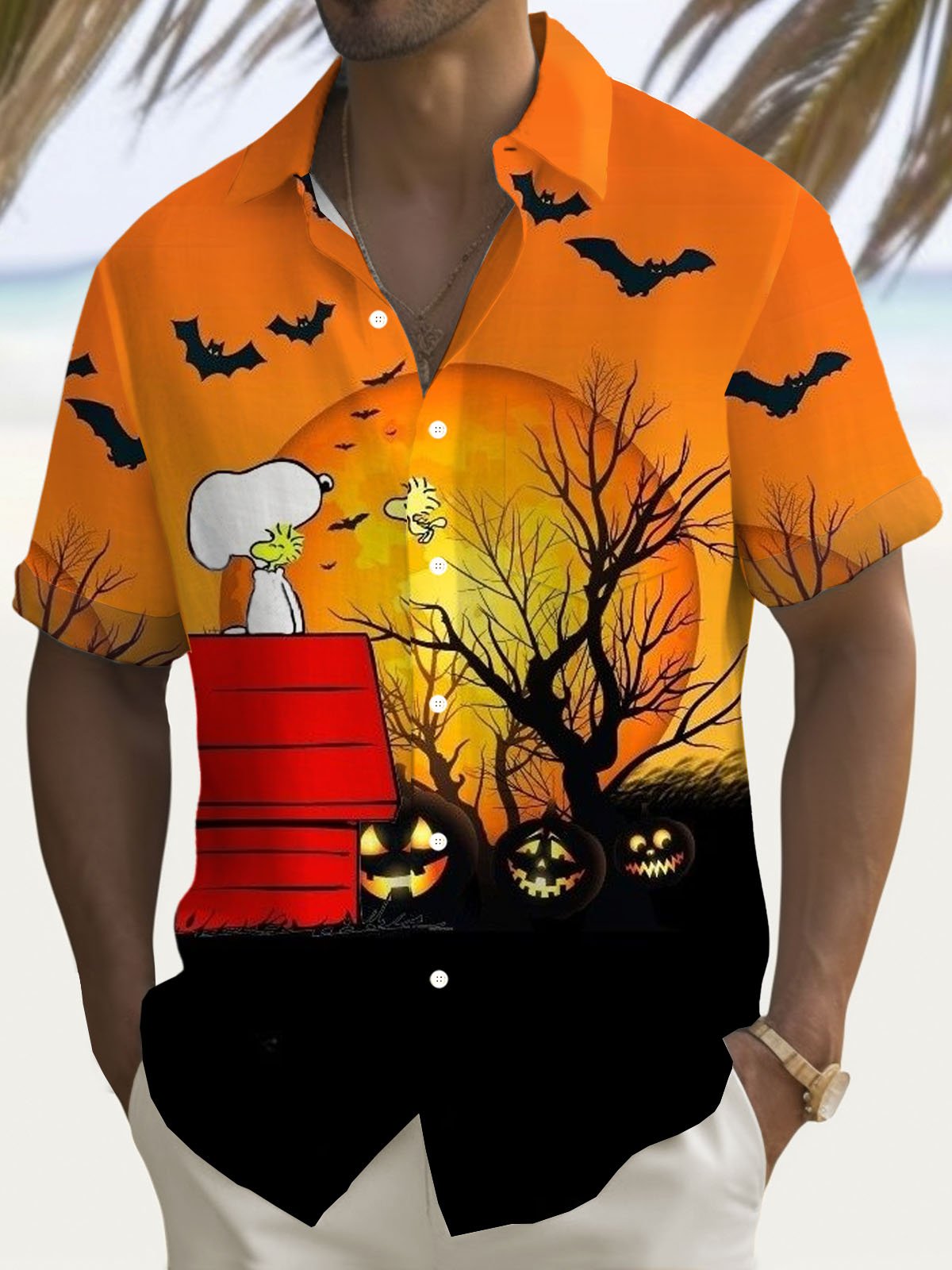 Alohadaddy Holiday Halloween Pumpkin Cartoon 3D Digital Print Men's Button Pocket Short Sleeve Shirt Big & Tall