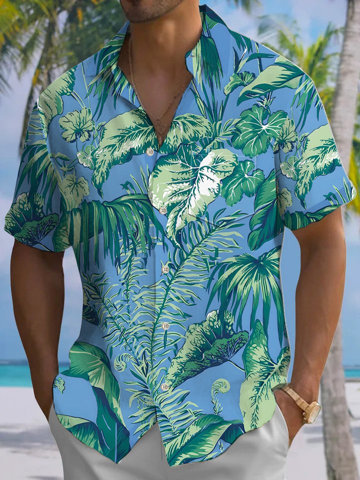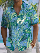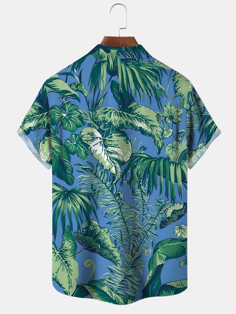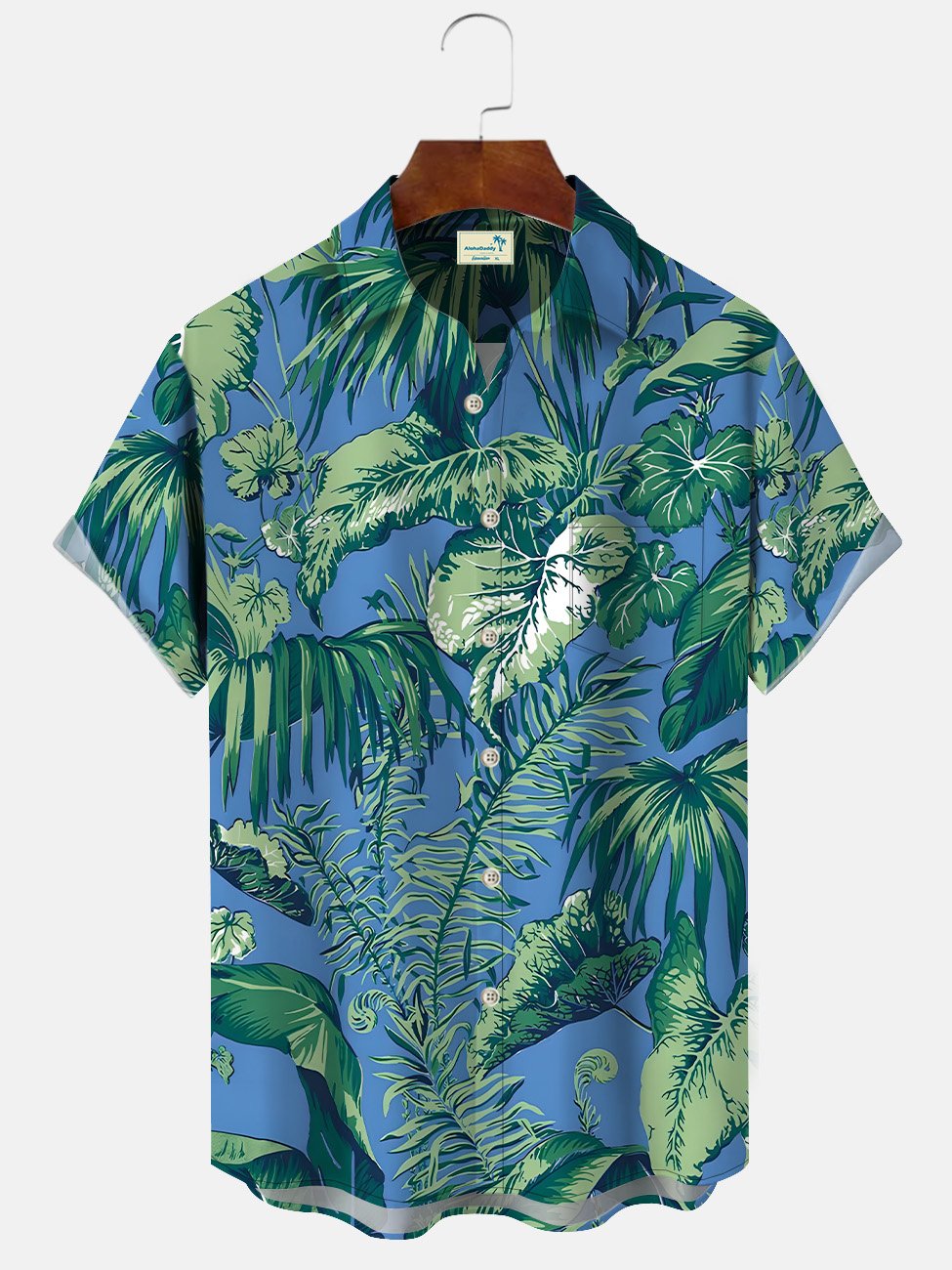 Alohadaddy Plant Leaves Button Pocket Casual Short Sleeve Shirt