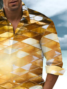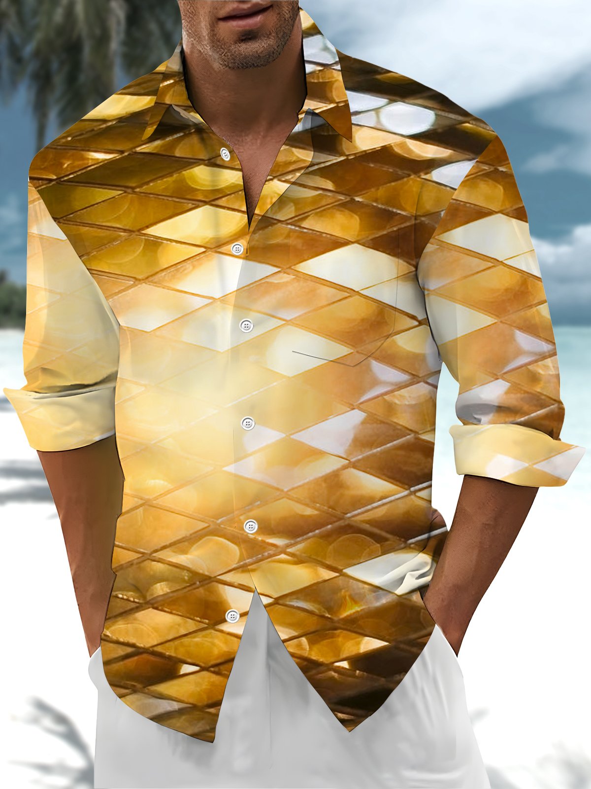 Alohadaddy® Casual Geometric Art Print Chest Pocket Stretch Men's Long Sleeve Shirt Big & Tall