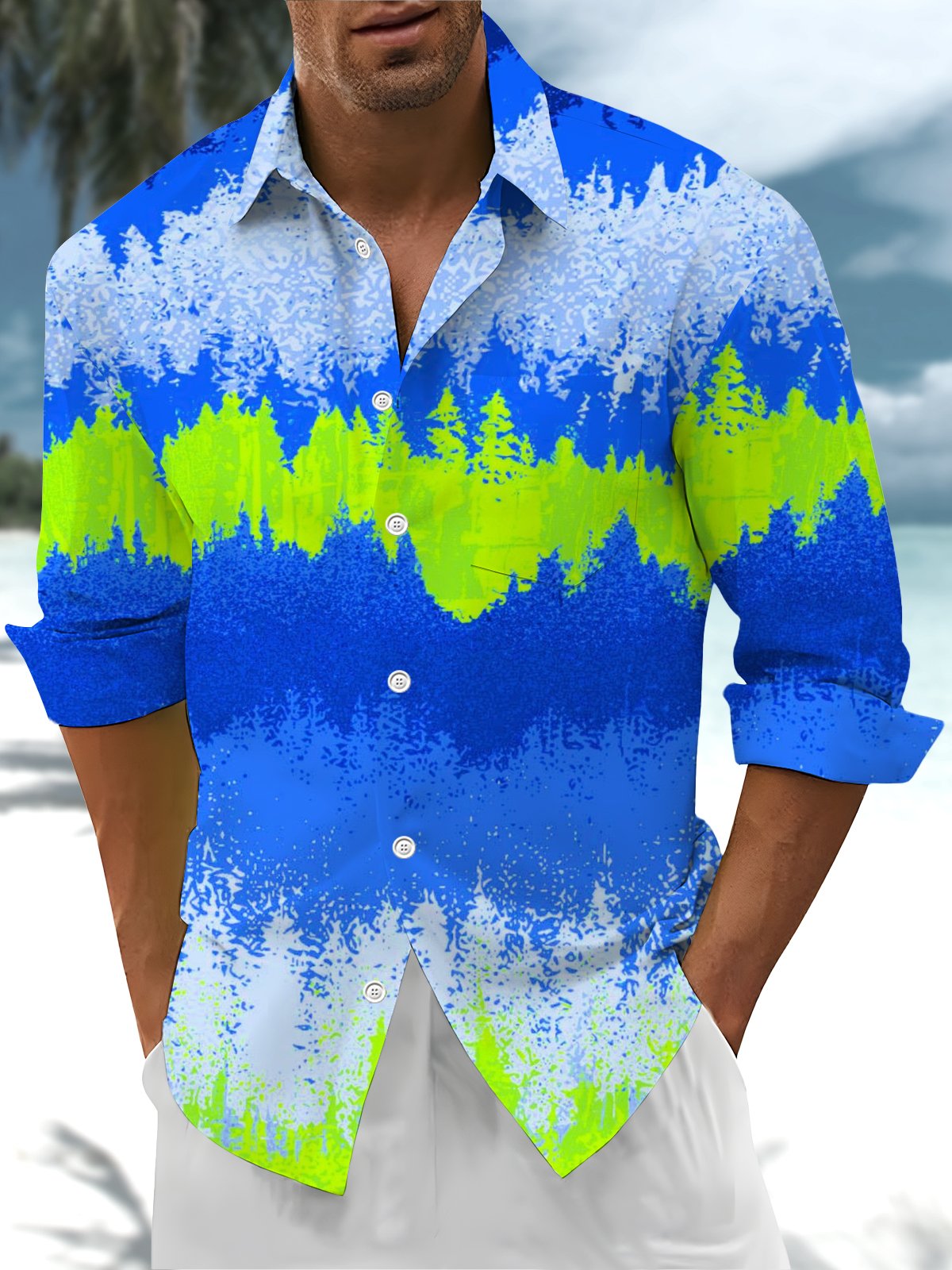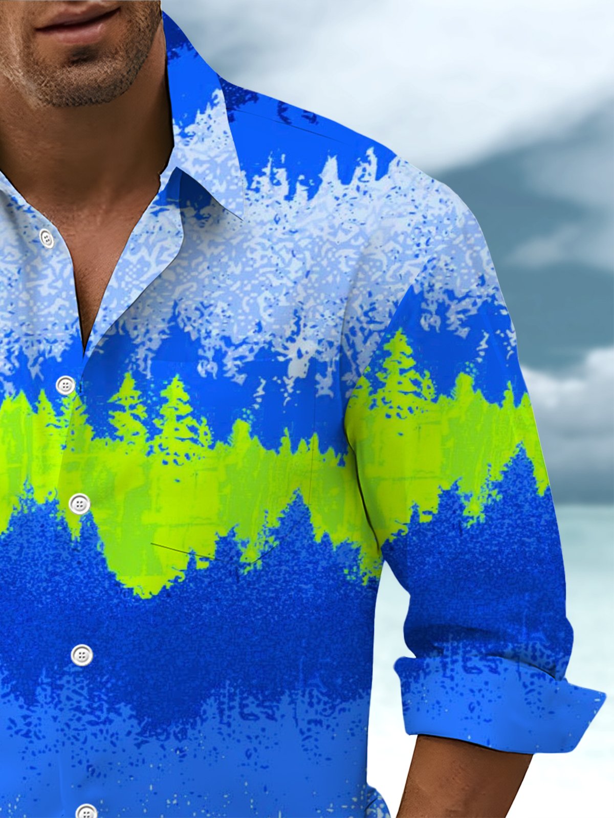 Alohadaddy® Casual Ombre Printed Pockets Men's Stretch Long Sleeve Shirt Big & Tall