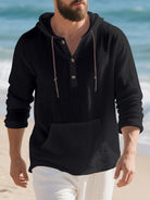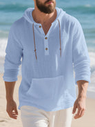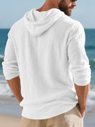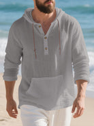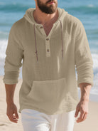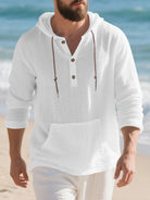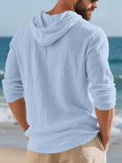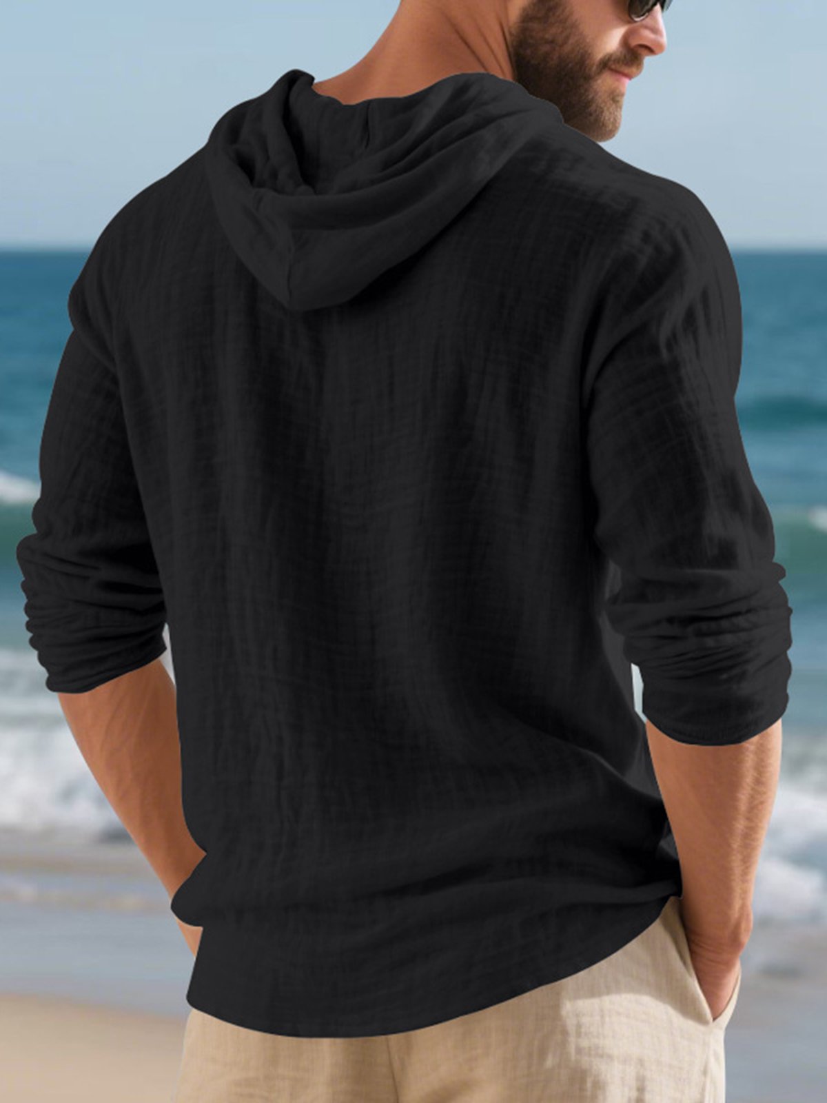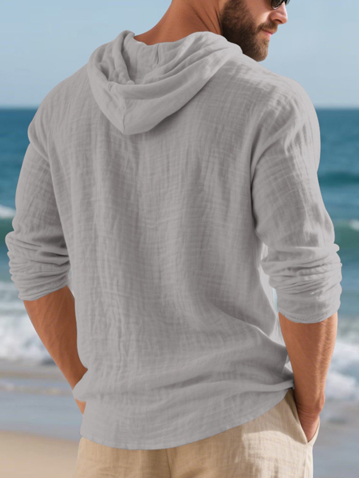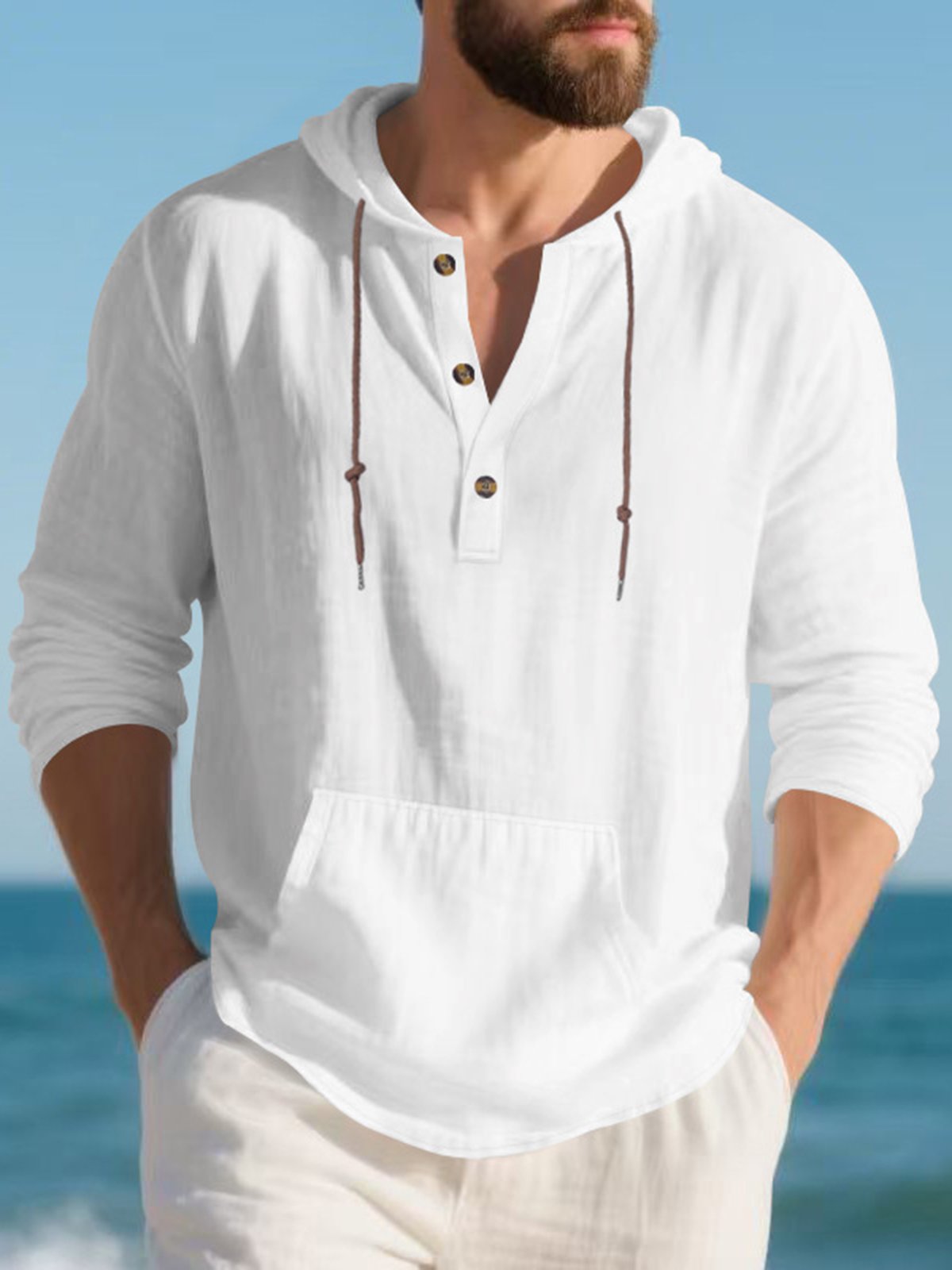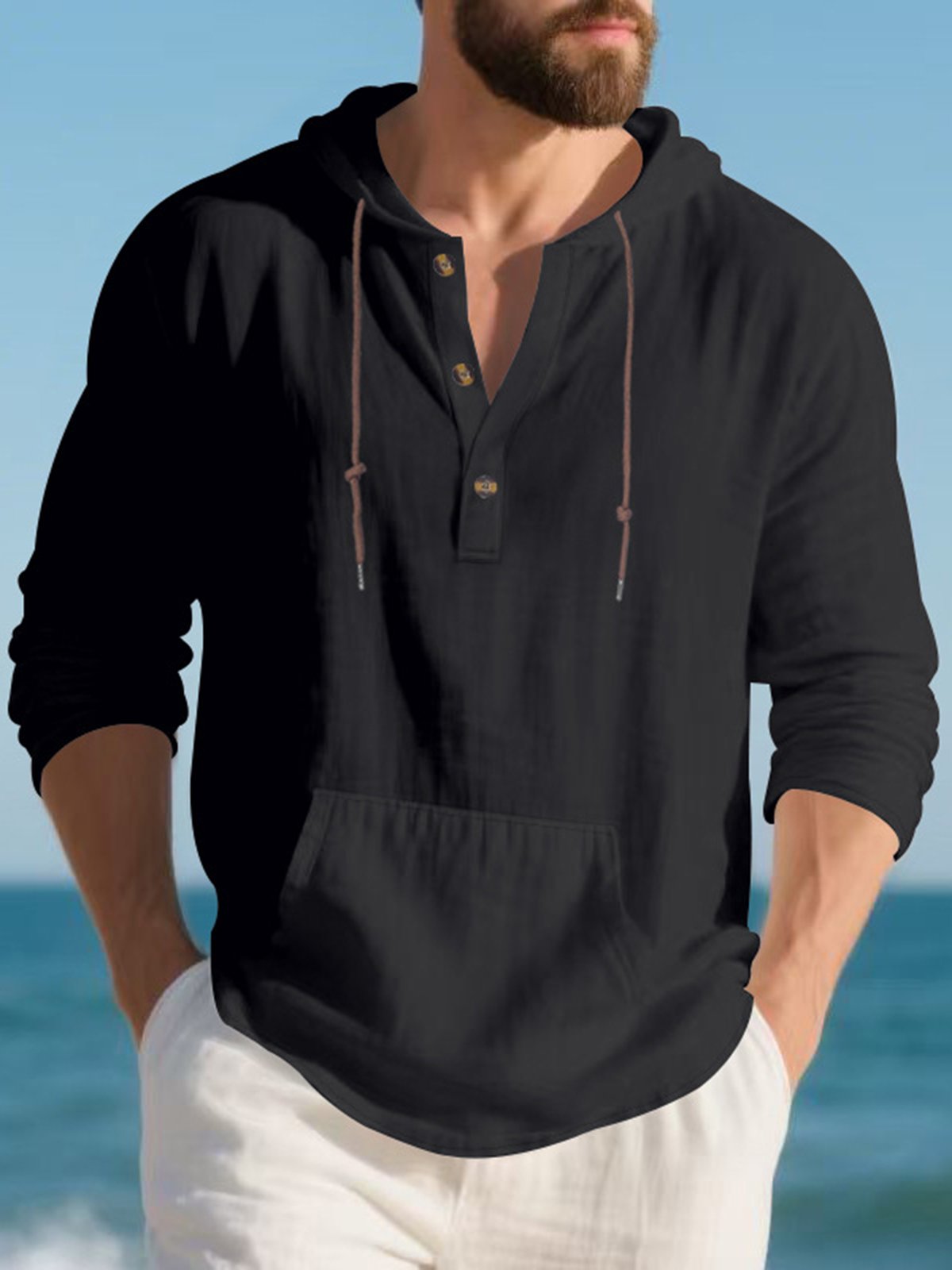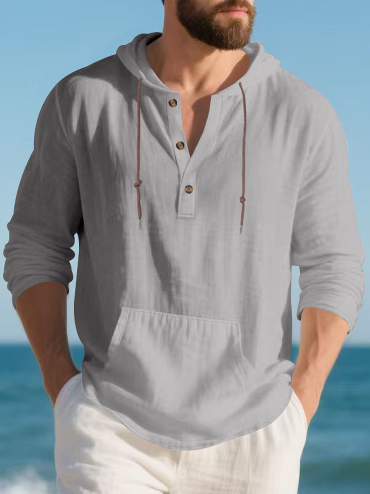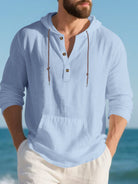 Alohadaddy® Linen Men's Long Sleeve T-shirt Loose Casual Simple Trend Home Hooded Henley Shirt