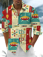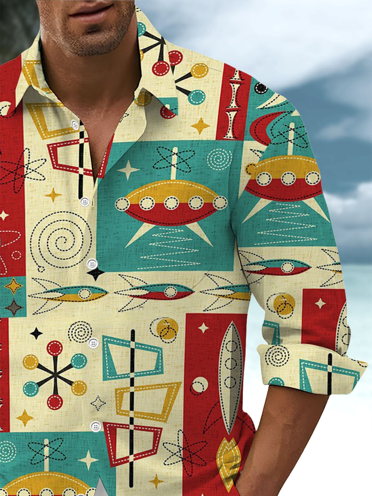Alohadaddy® Retro Geometric Cartoon Art Print Pocket Stretch Men's Long Sleeve Shirt Big & Tall