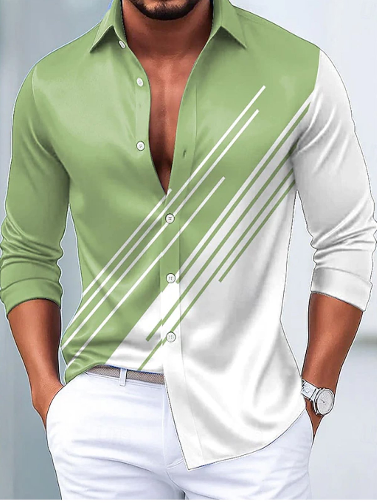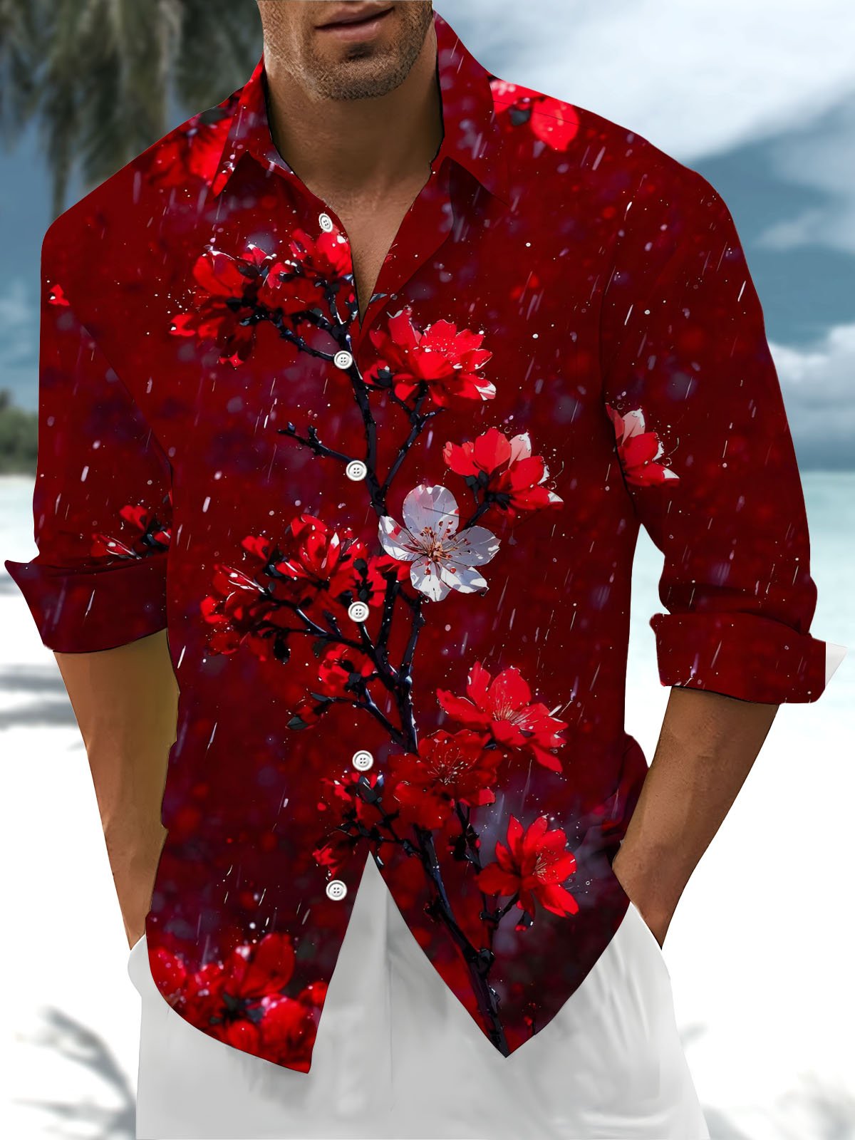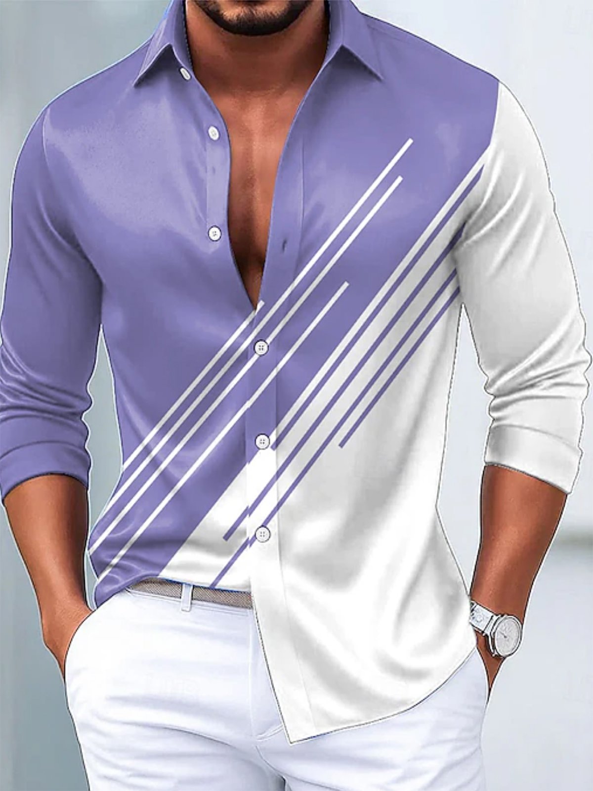 Alohadaddy® Casual Solid Color All-Match Washed Cotton Button-Down Long Sleeve Shirt Big & Tall