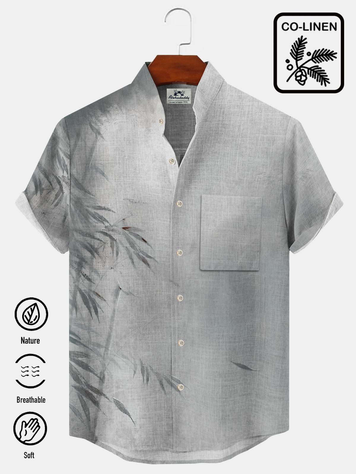 Alohadaddy Bamboo Stand Collar Button Pocket Casual Short Sleeve Shirt