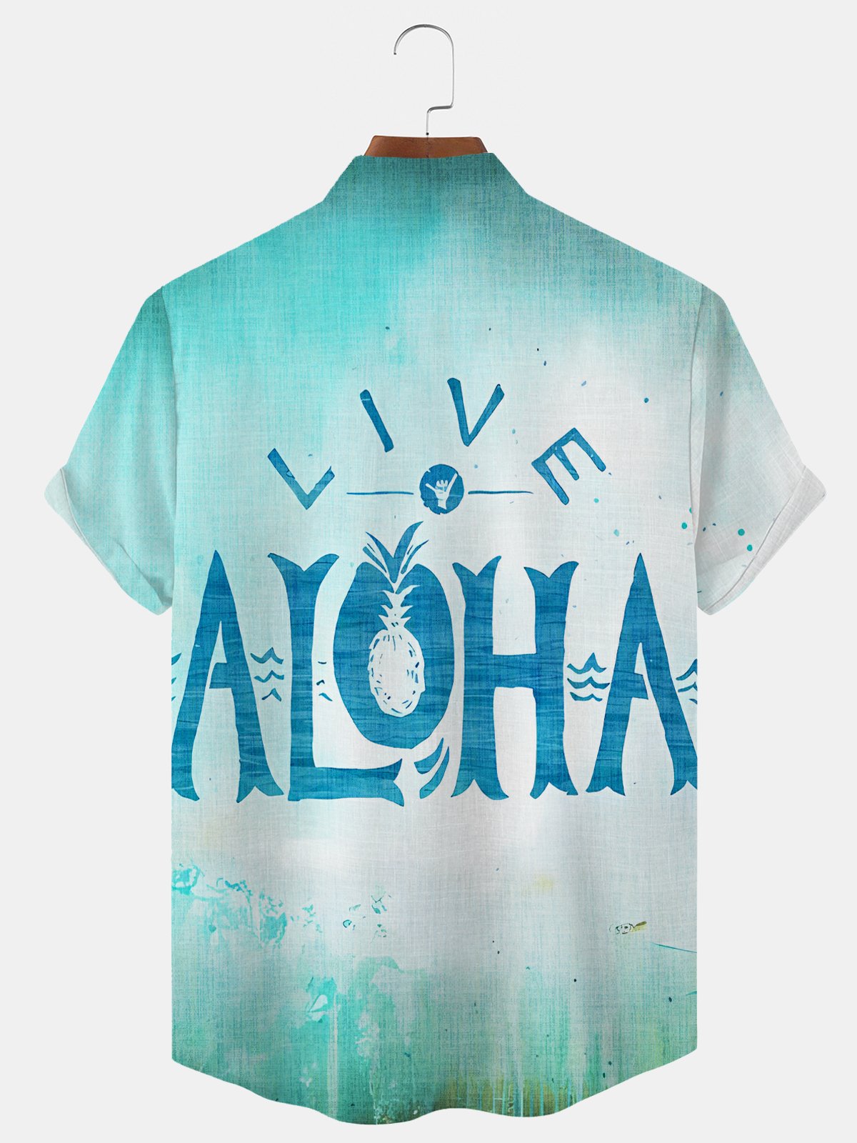 Alohadaddy Beach Gradient Button Pocket Casual Short Sleeve Stand Collar Shirt