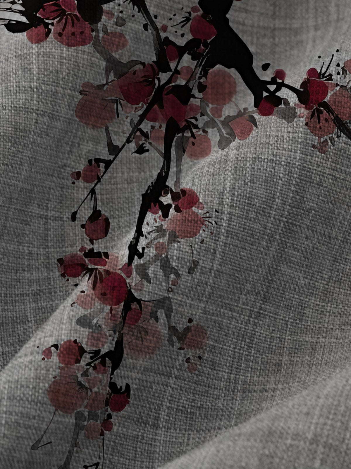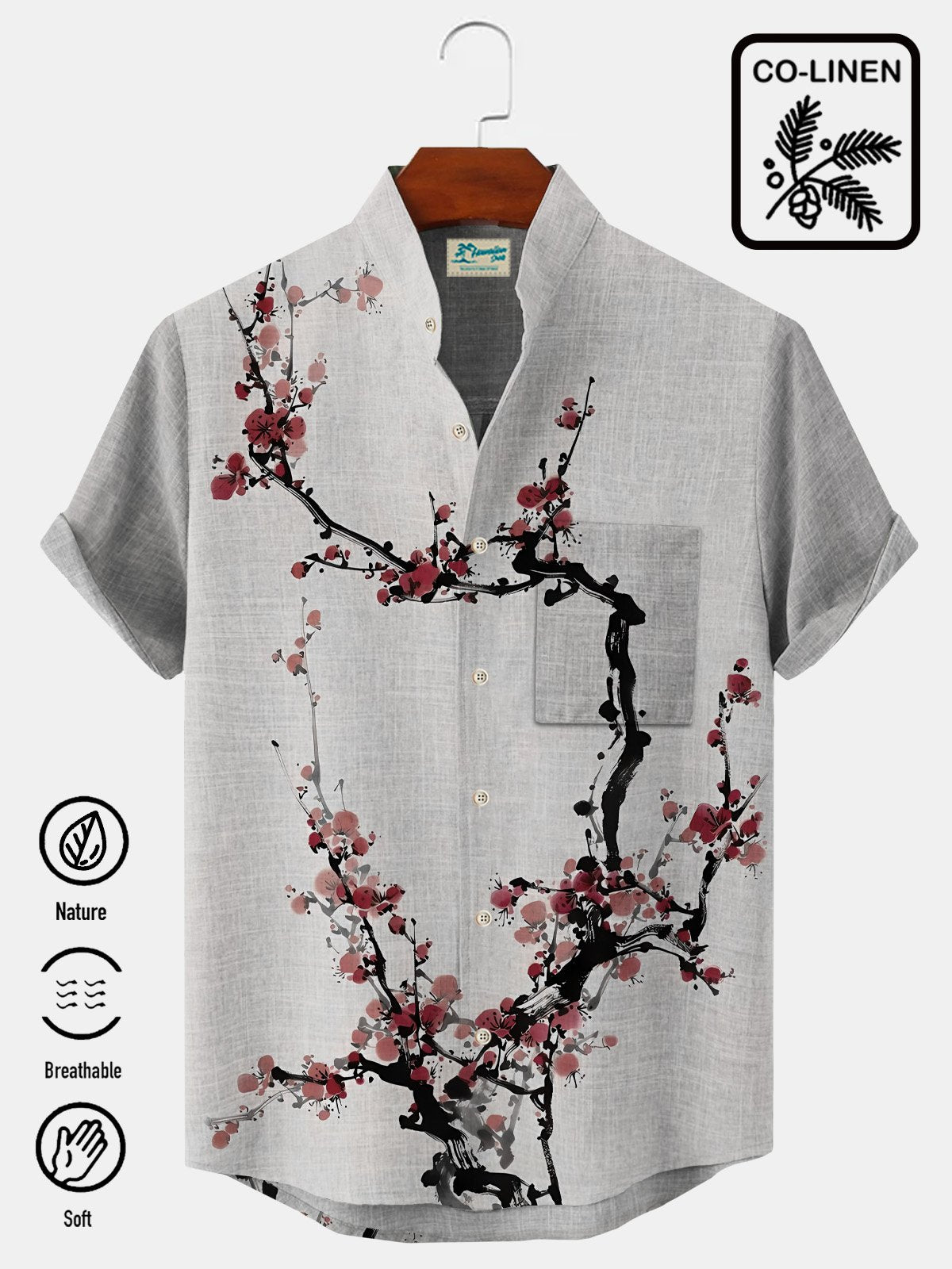 Alohadaddy Ethnic Style Peach Blossom Men's Pocket Button Casual Short Sleeve Shirt