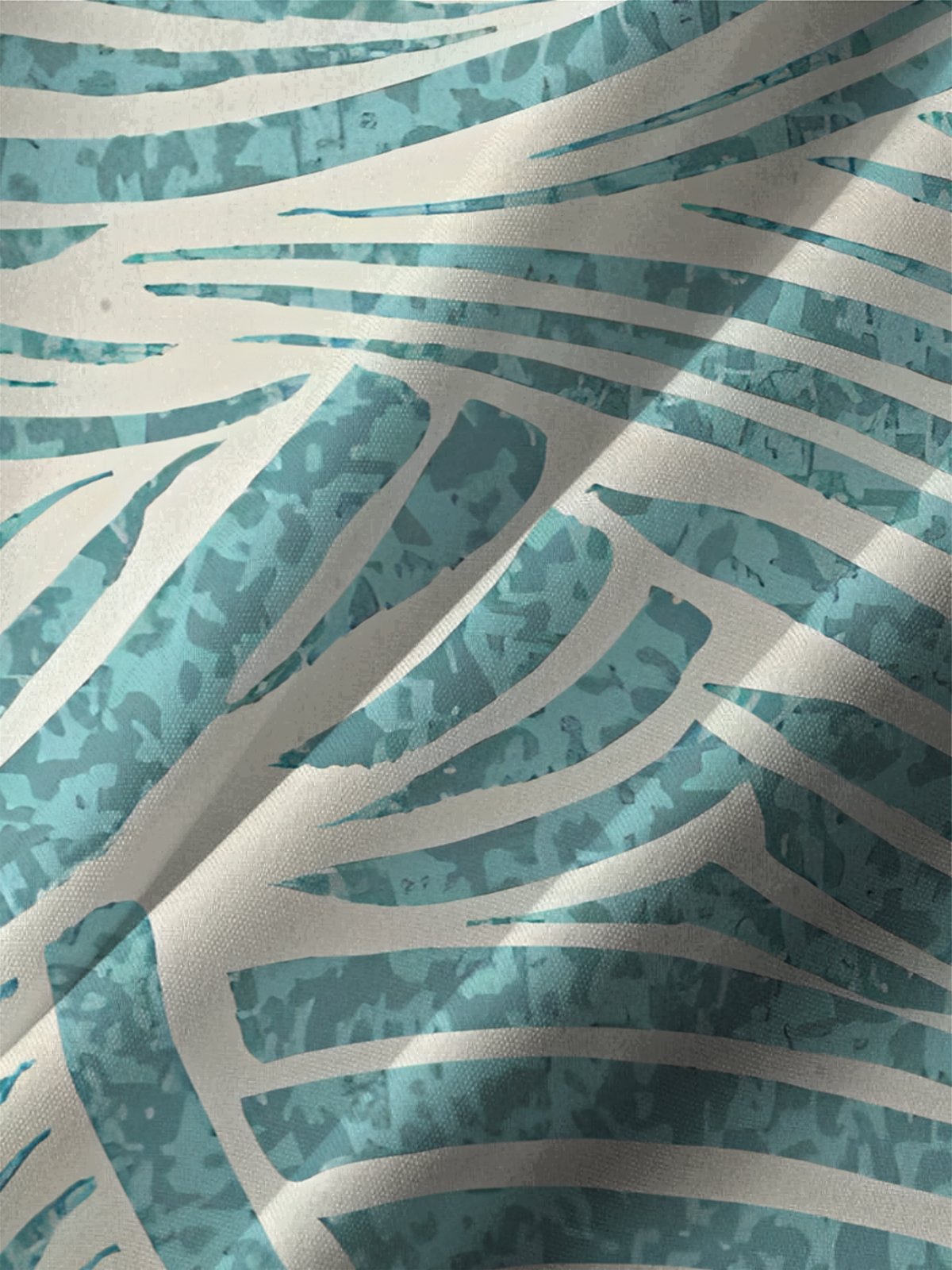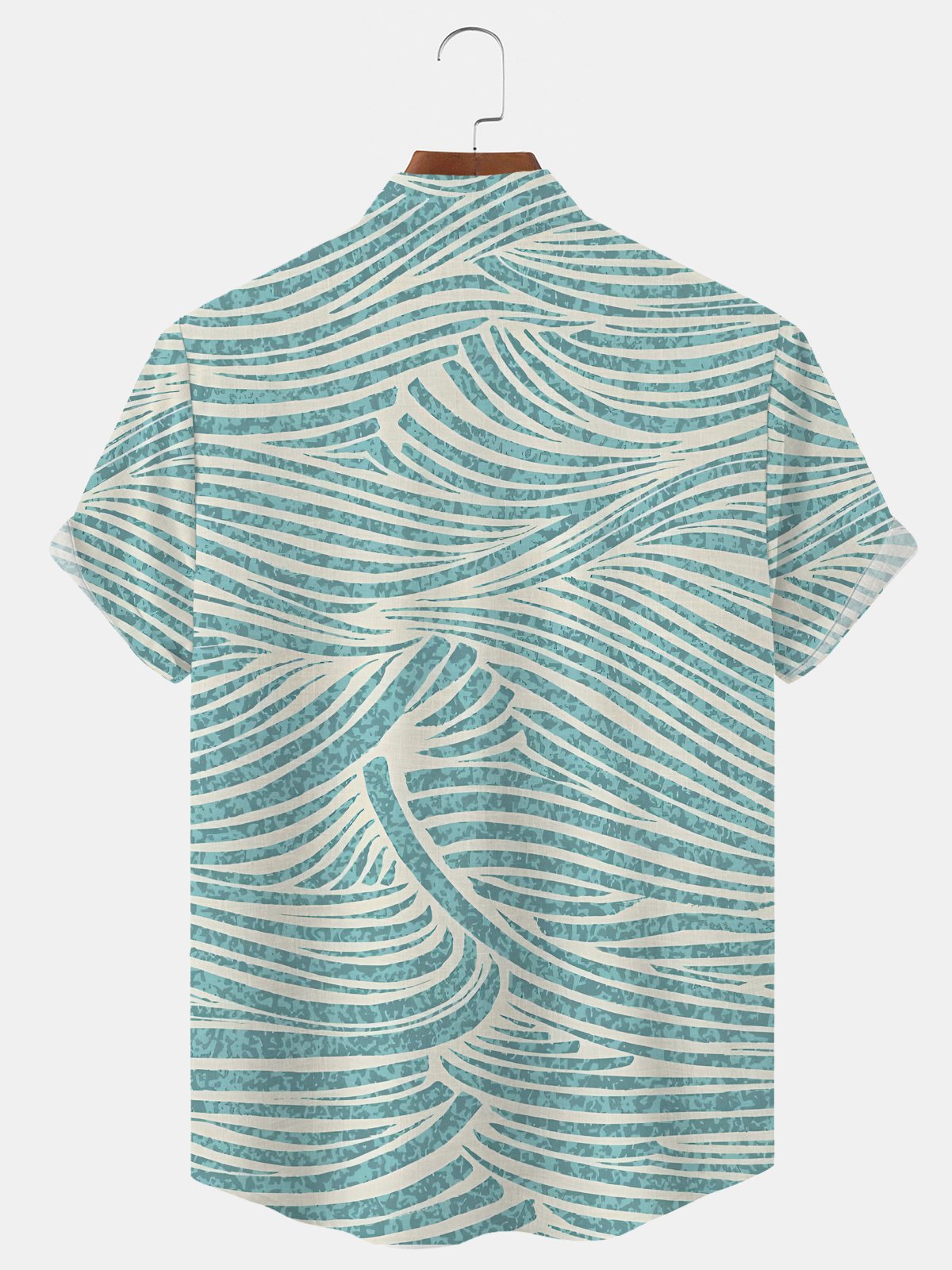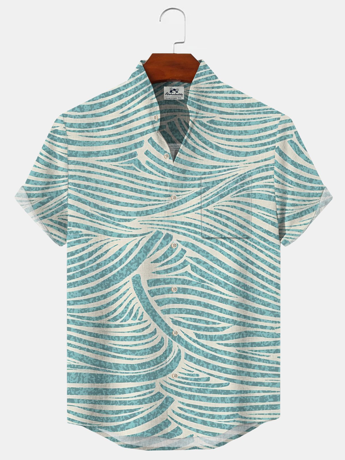 Alohadaddy Geometric Stripes Button Pocket Casual Short Sleeve Stand Collar Shirt