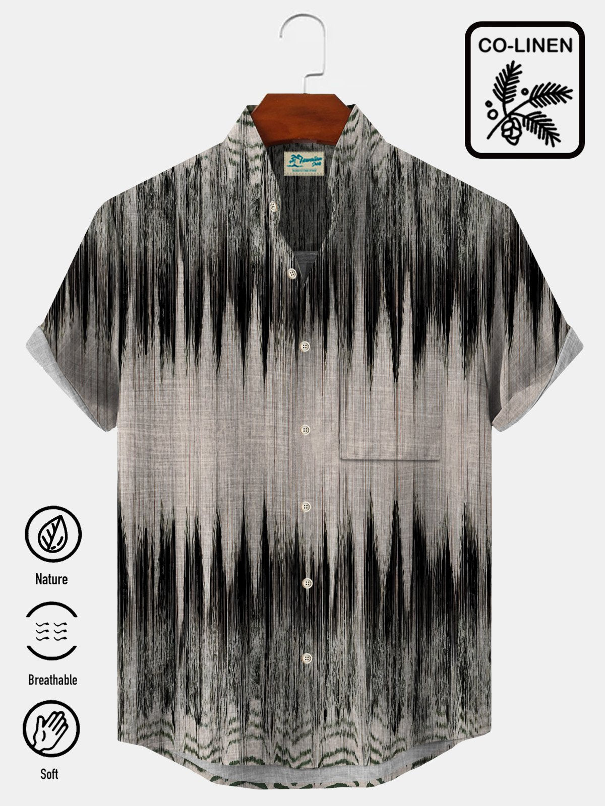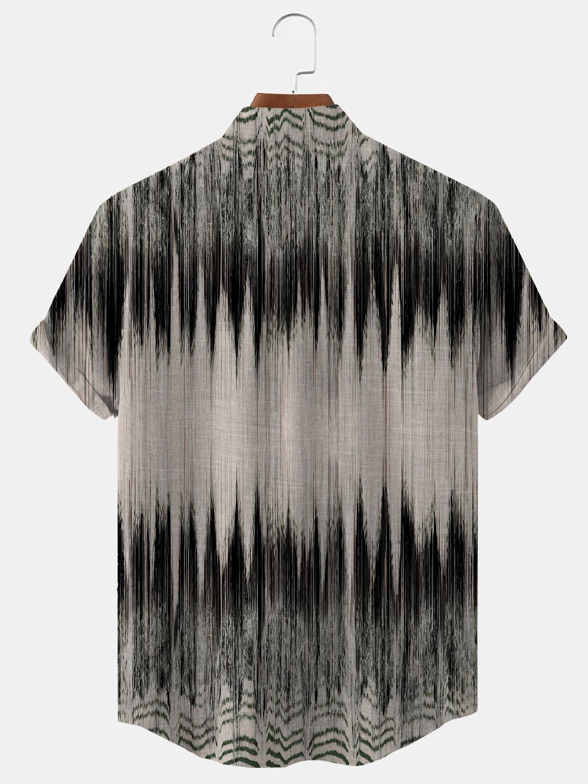 Alohadaddy Geometric Stripes Men's Pocket Button Casual 50S Bowling Commuter Short Sleeve Shirt