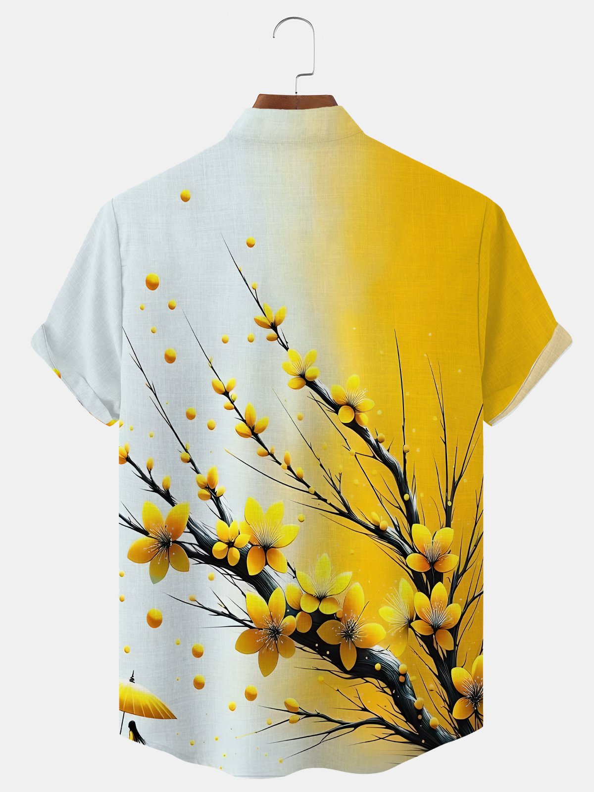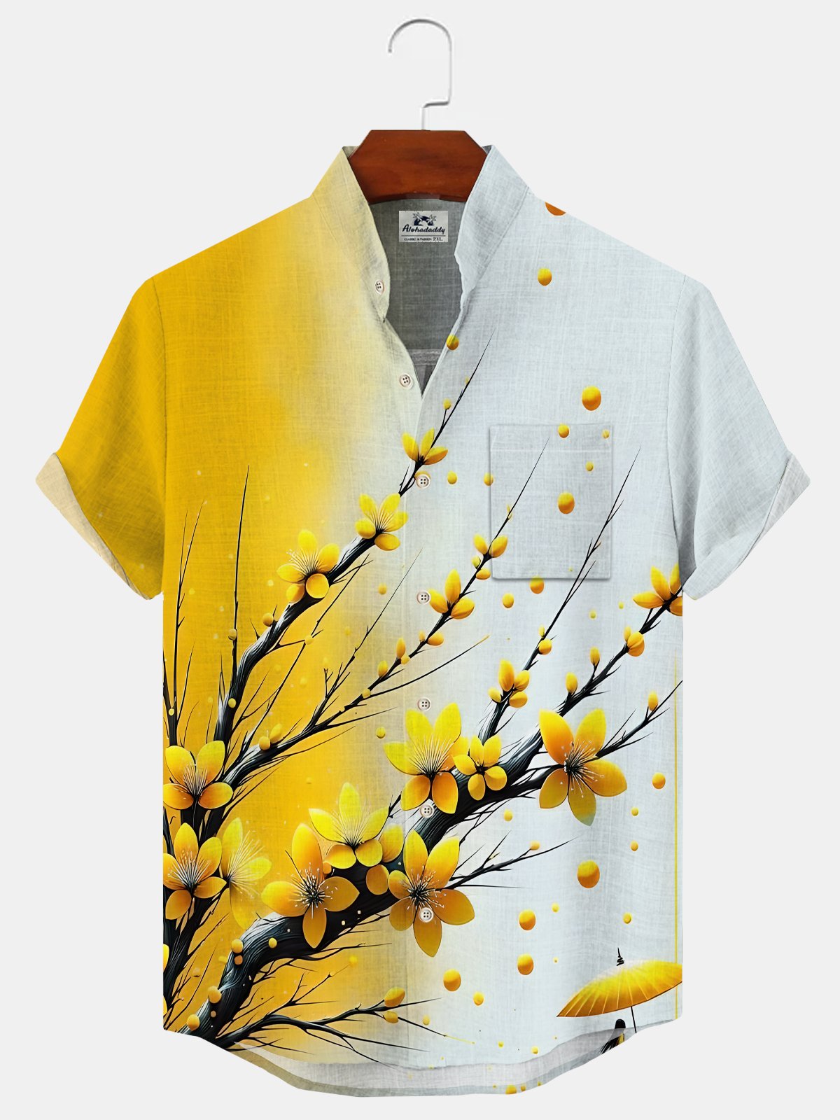 Alohadaddy Plant Flower Gradient Button Pocket Casual Short Sleeve Stand Collar Shirt