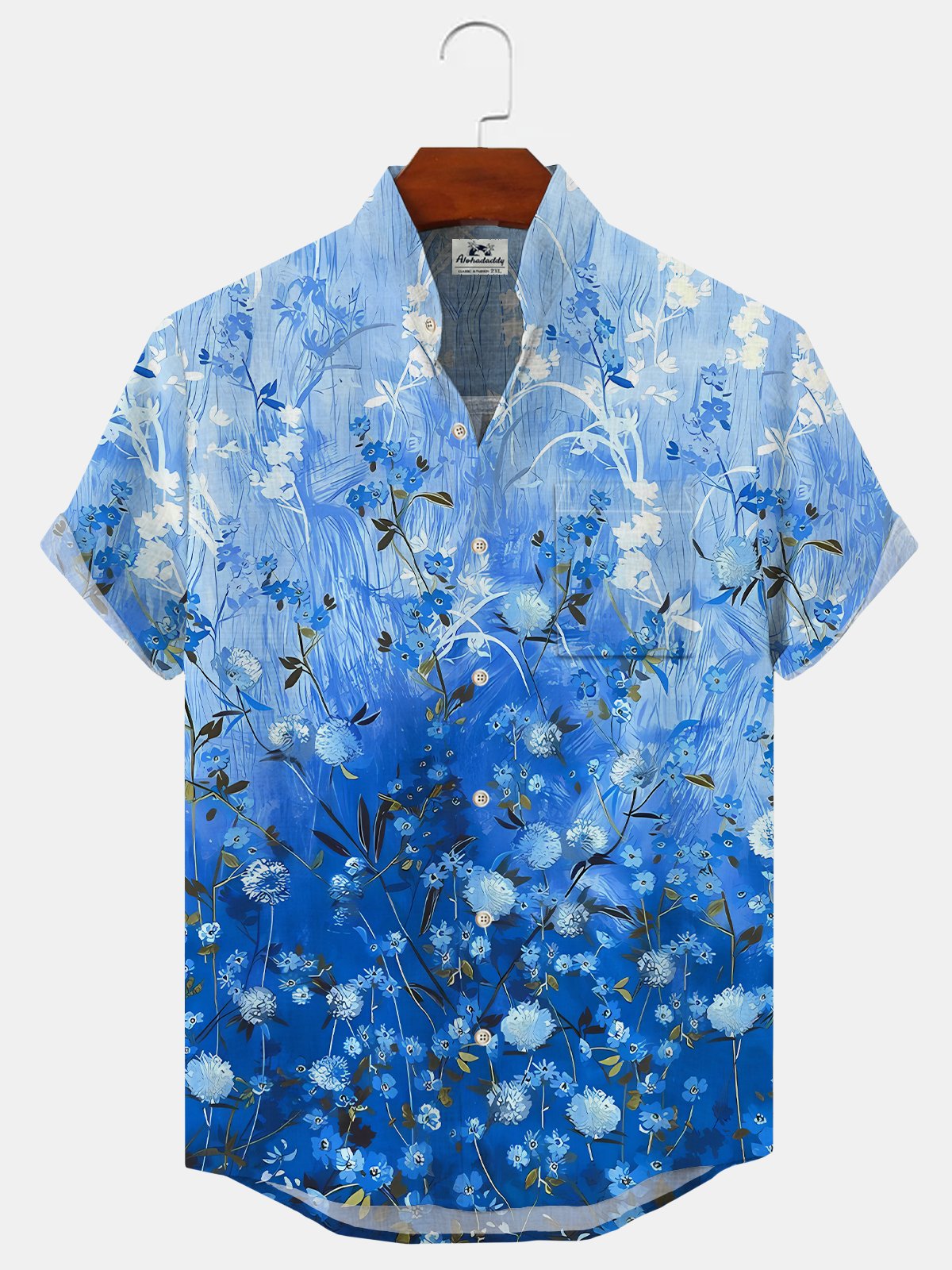 Alohadaddy Plant Gradient Button Pocket Casual Short Sleeve Stand Collar Shirt