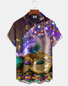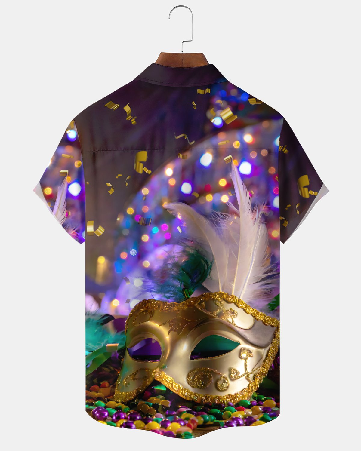 Alohadaddy® Holiday Mardi Gras Party Mask Beaded Shirt Men's Shirt