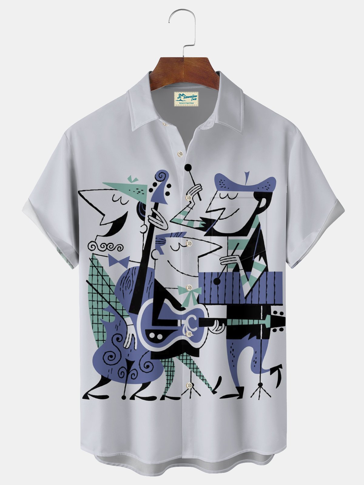 Alohadaddy® Retro Medieval Band Geometric Print Men's Lapel Pocket Short Sleeve Shirt Big & Tall