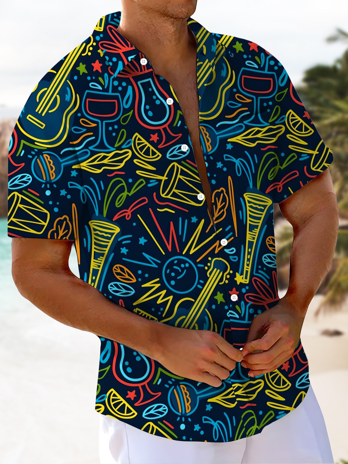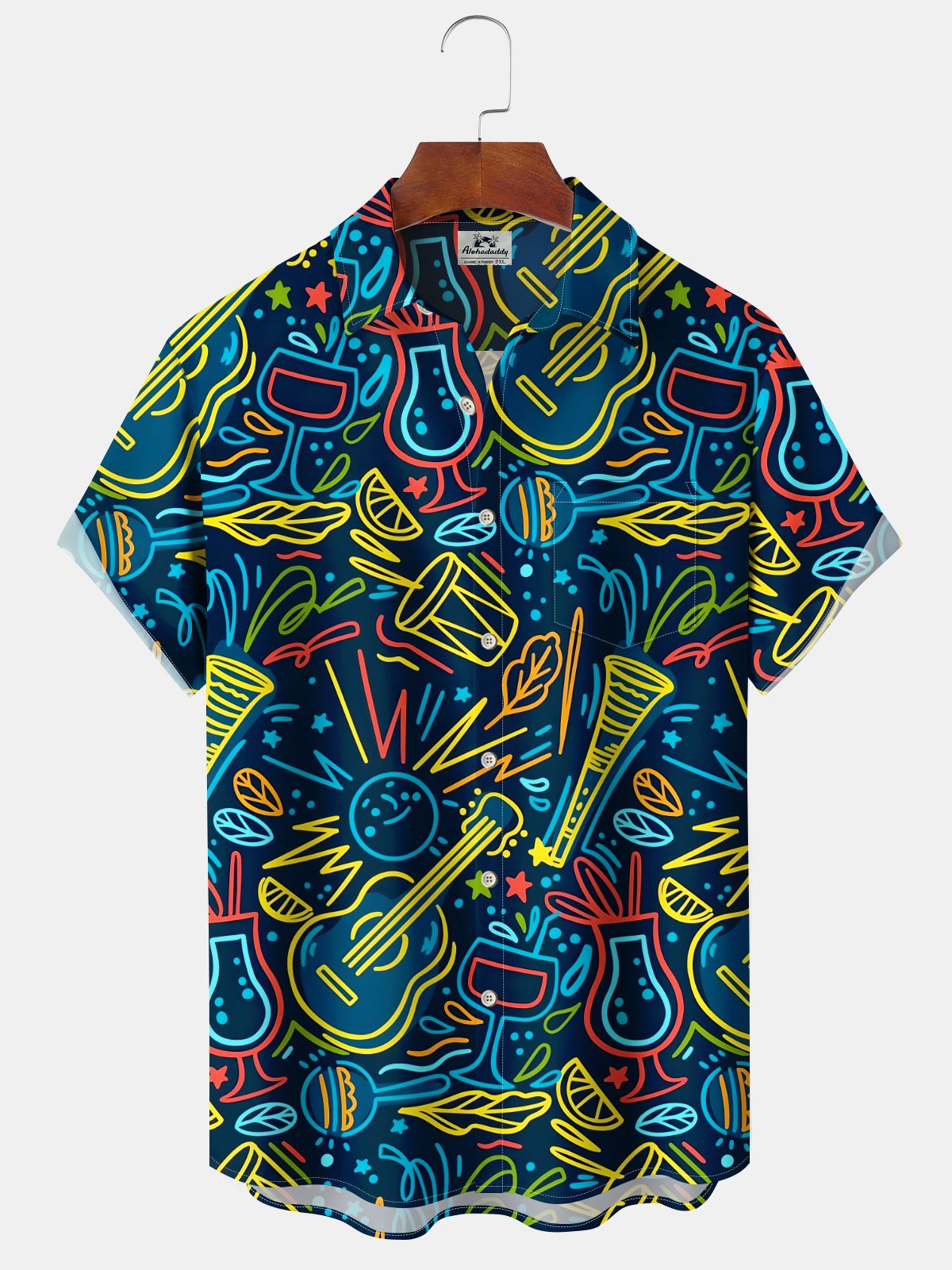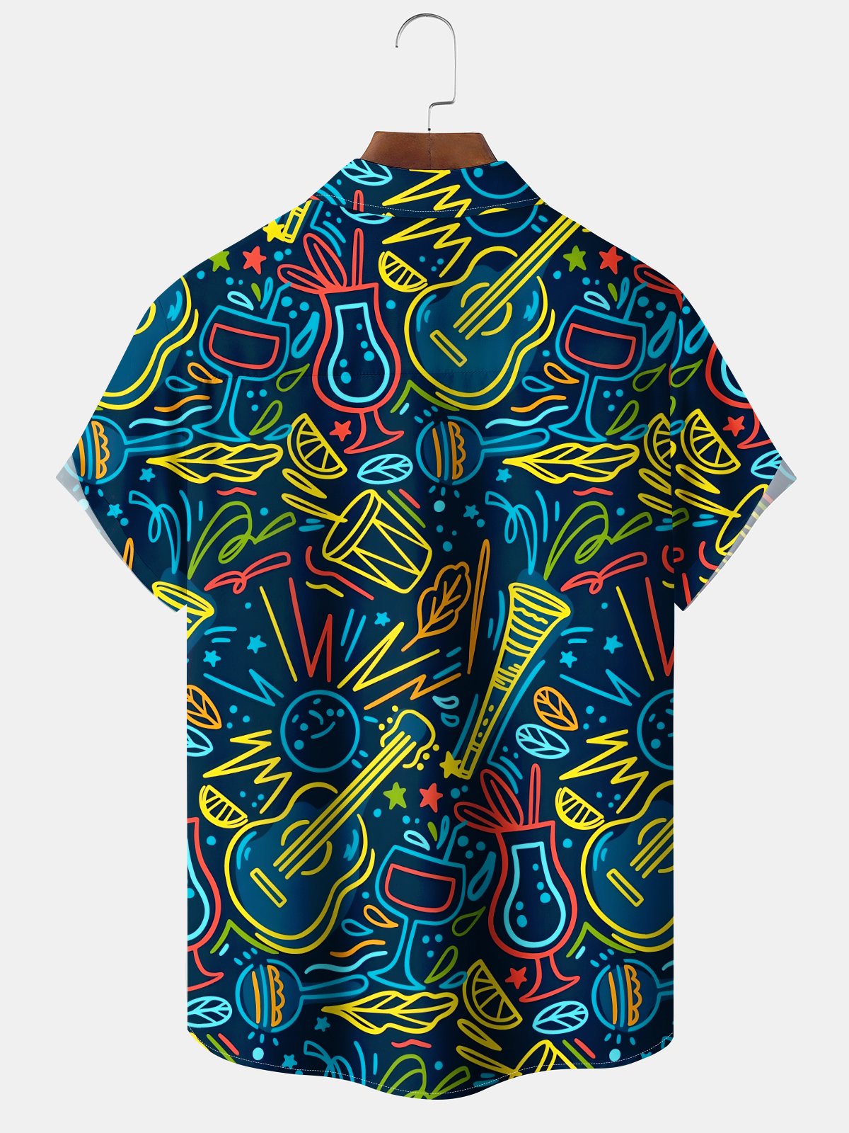 Alohadaddy® Casual Graffiti Print Art Pocket Stretch Big & Tall Men's Short Sleeve Shirt