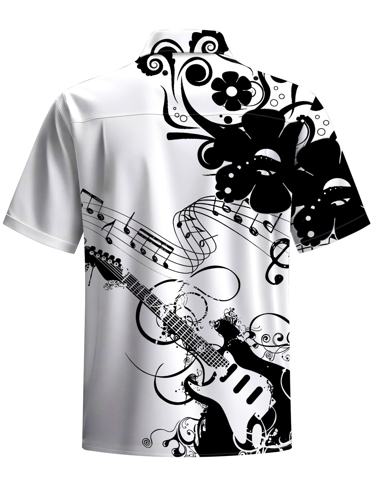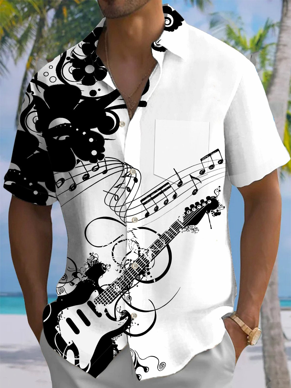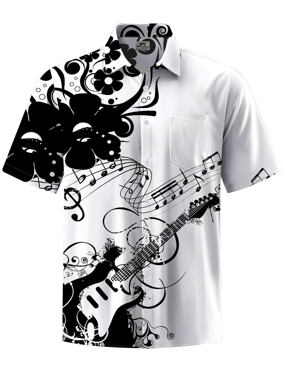 Alohadaddy® Casual Guitar Print Art Pocket Stretch Men's Short Sleeve Shirt Big & Tall