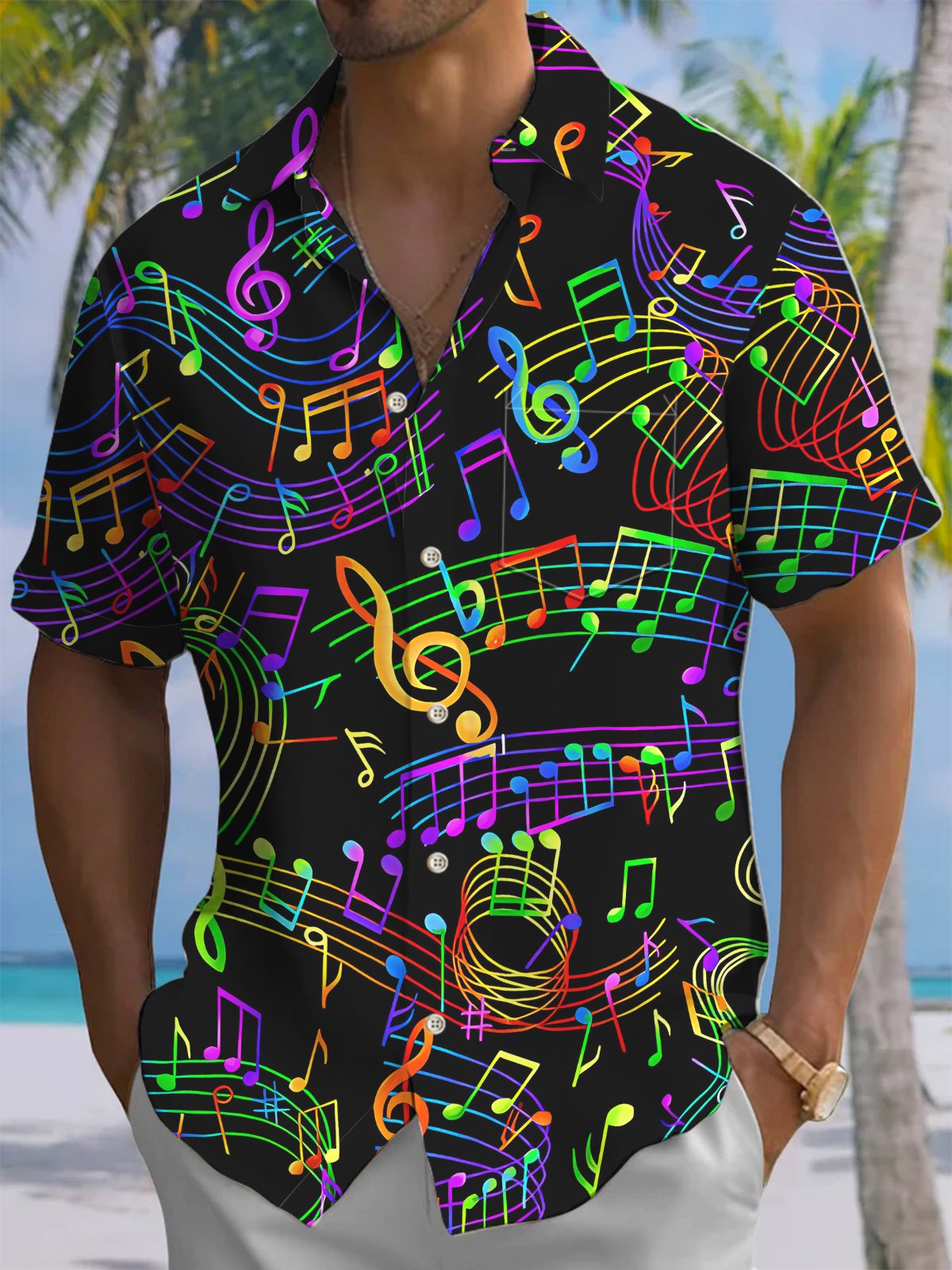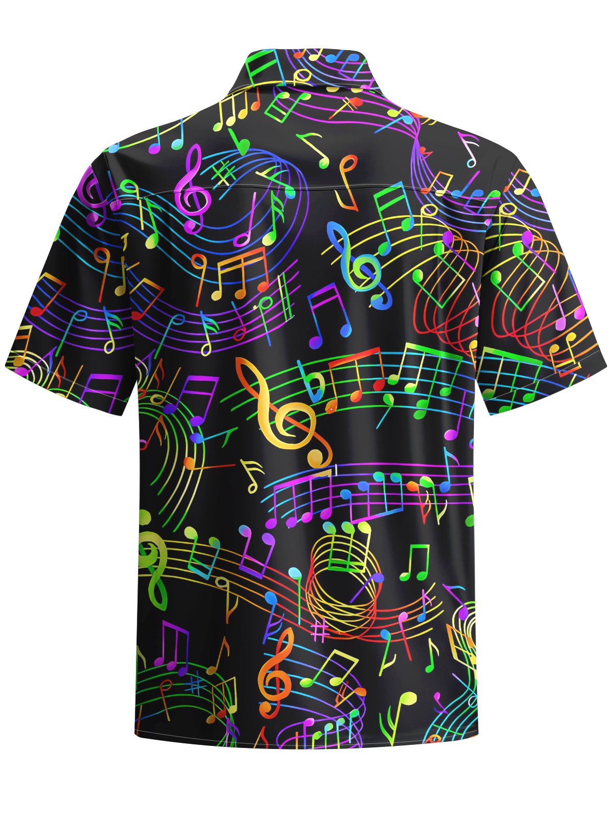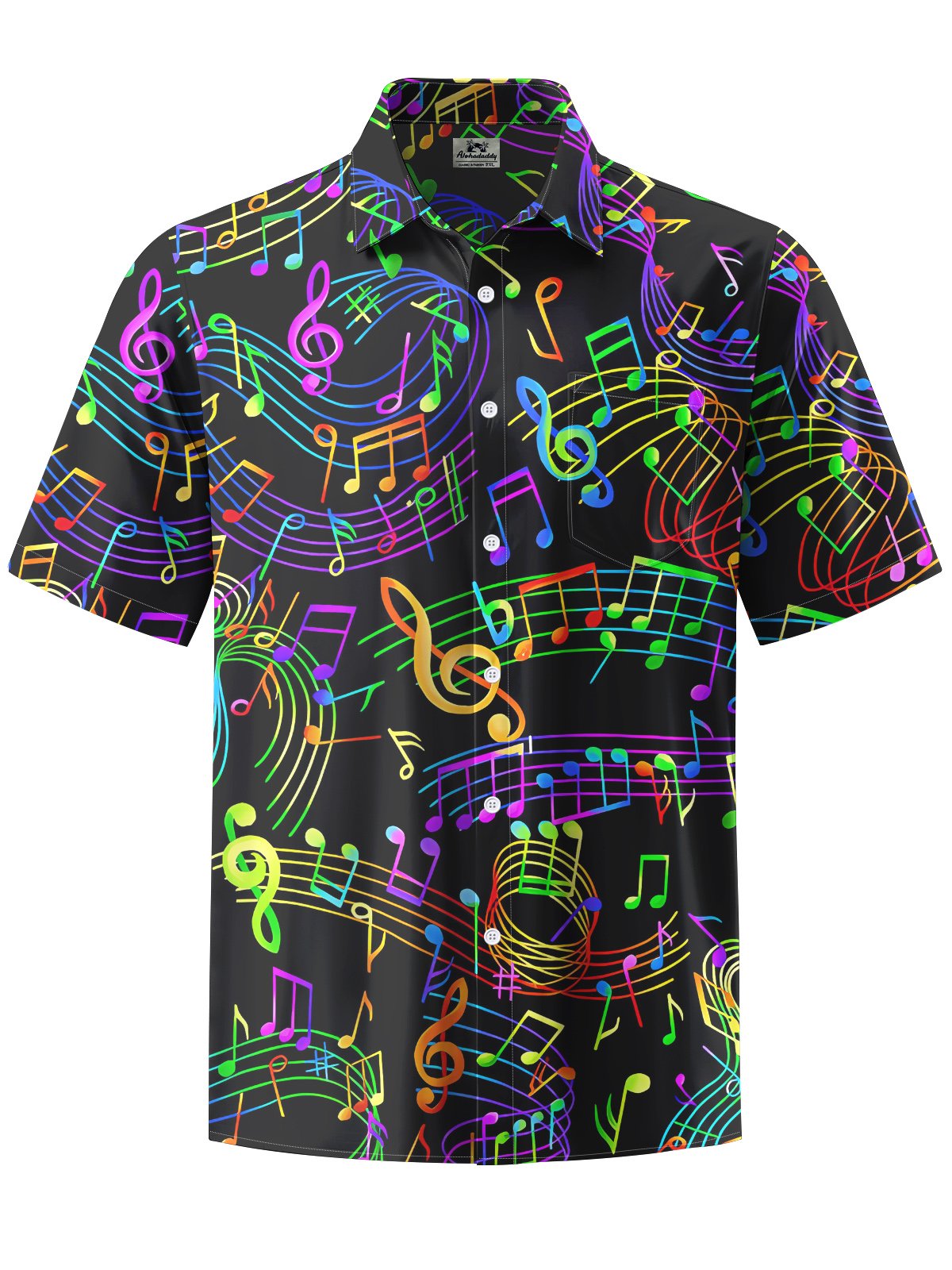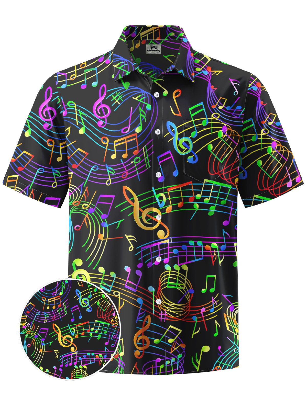 Alohadaddy® Casual Music Notes Printed Chest Pocket Men's Short Sleeve Shirt Big & Tall