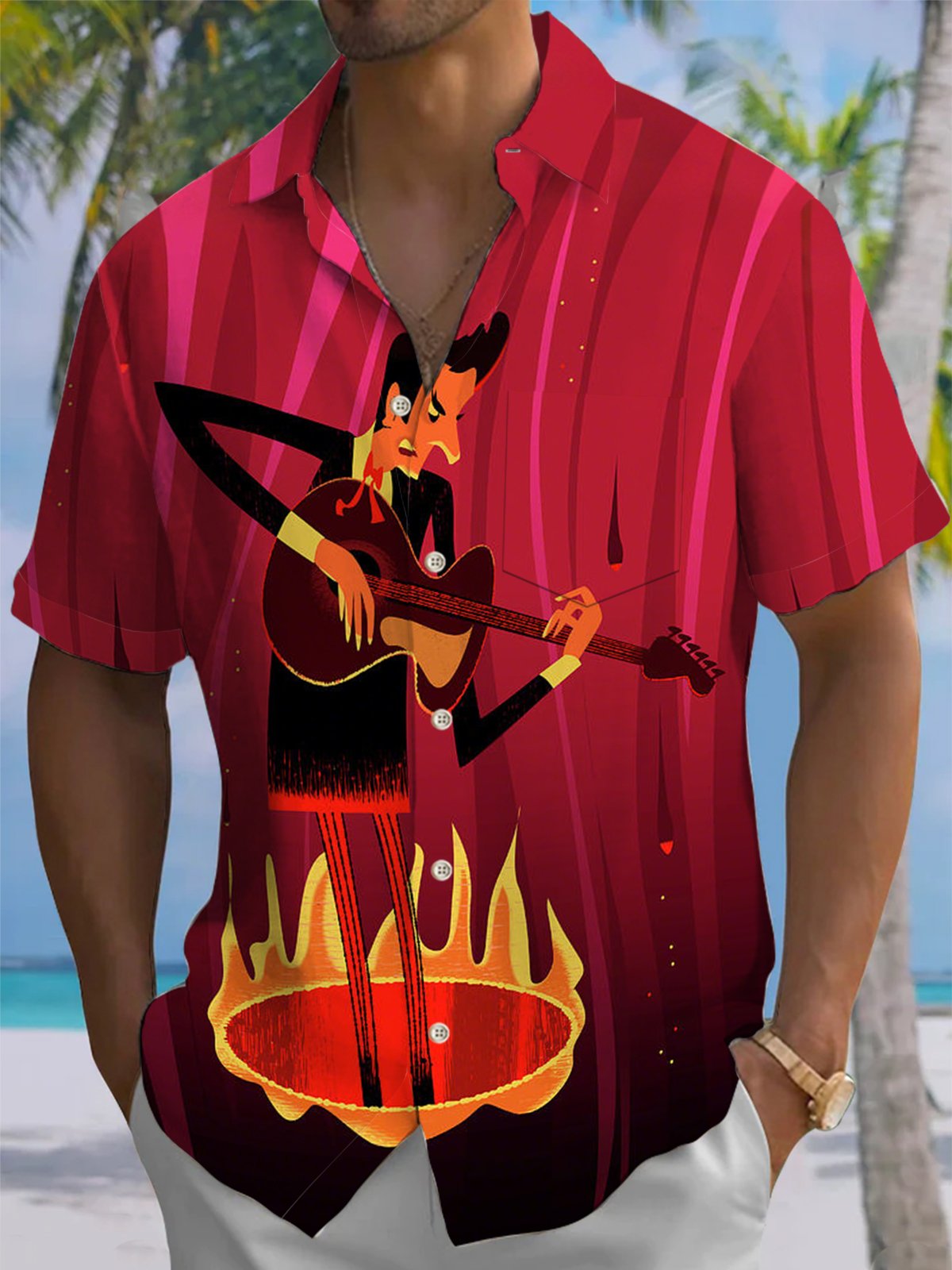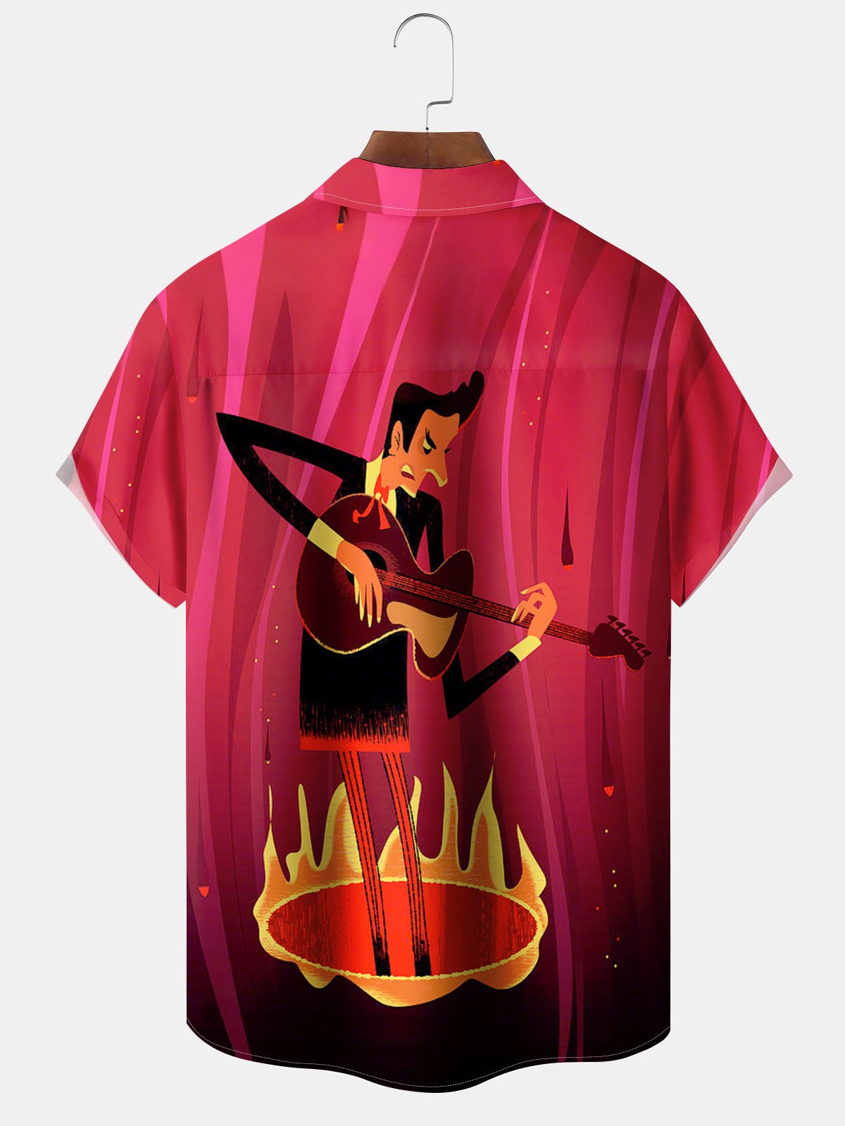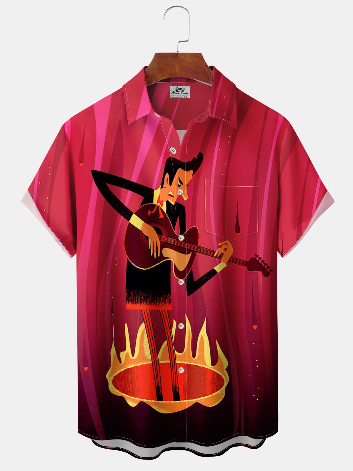 Alohadaddy® Retro Atom Cartoon Flame Print Pocket Stretch Men's Short Sleeve Shirt Big & Tall