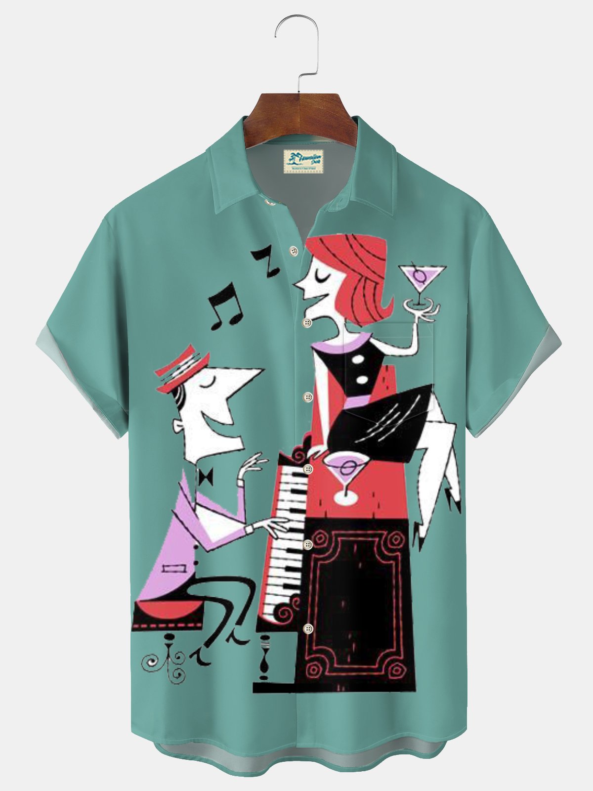 Alohadaddy® Retro Mid-Century Piano Geometric Print Men's Lapel Short Sleeve Shirt Big & Tall