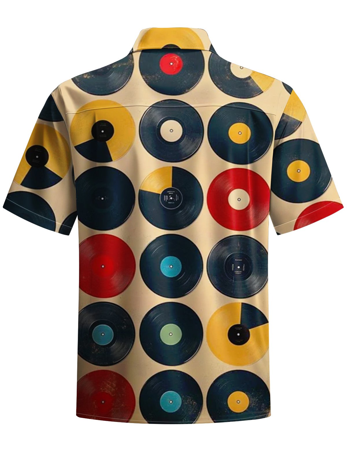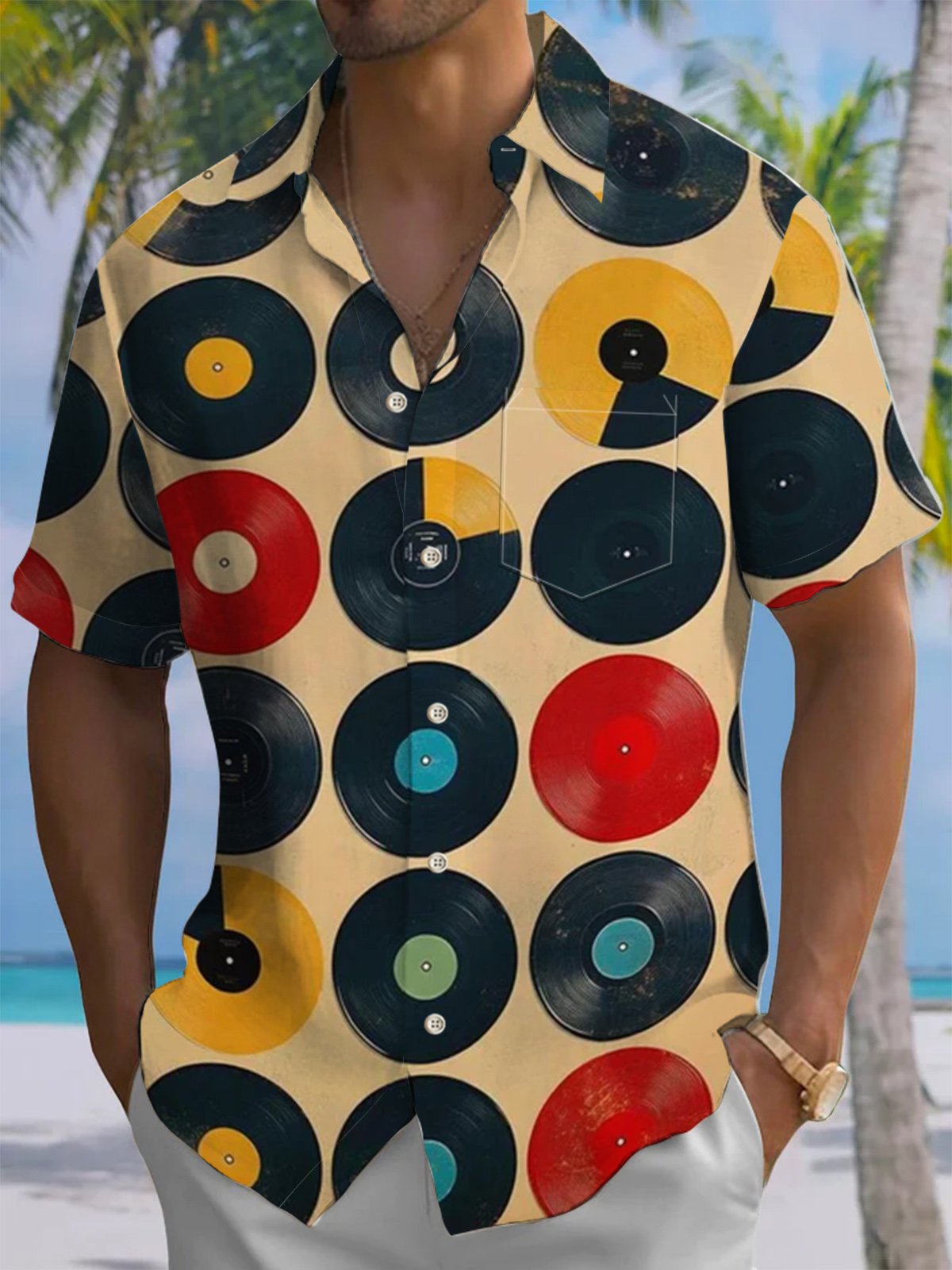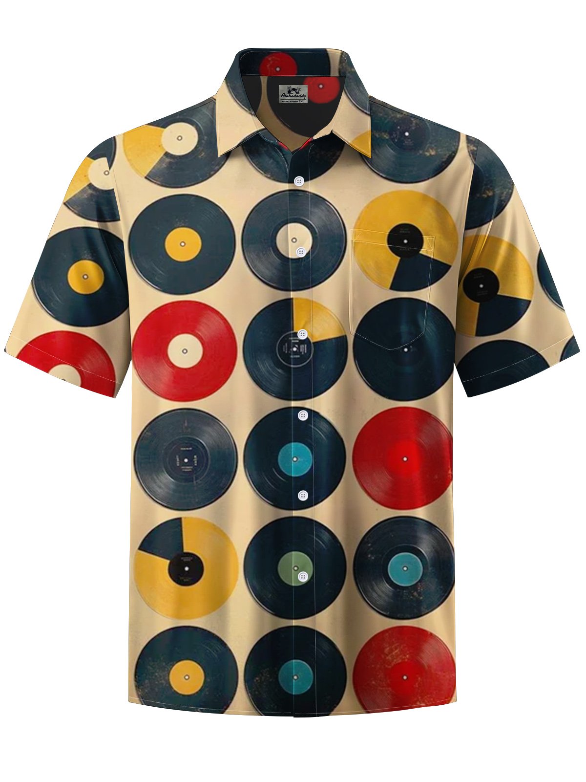 Alohadaddy® Retro Record Geometric Art Print Chest Pocket Men's Short Sleeve Shirt Big & Tall