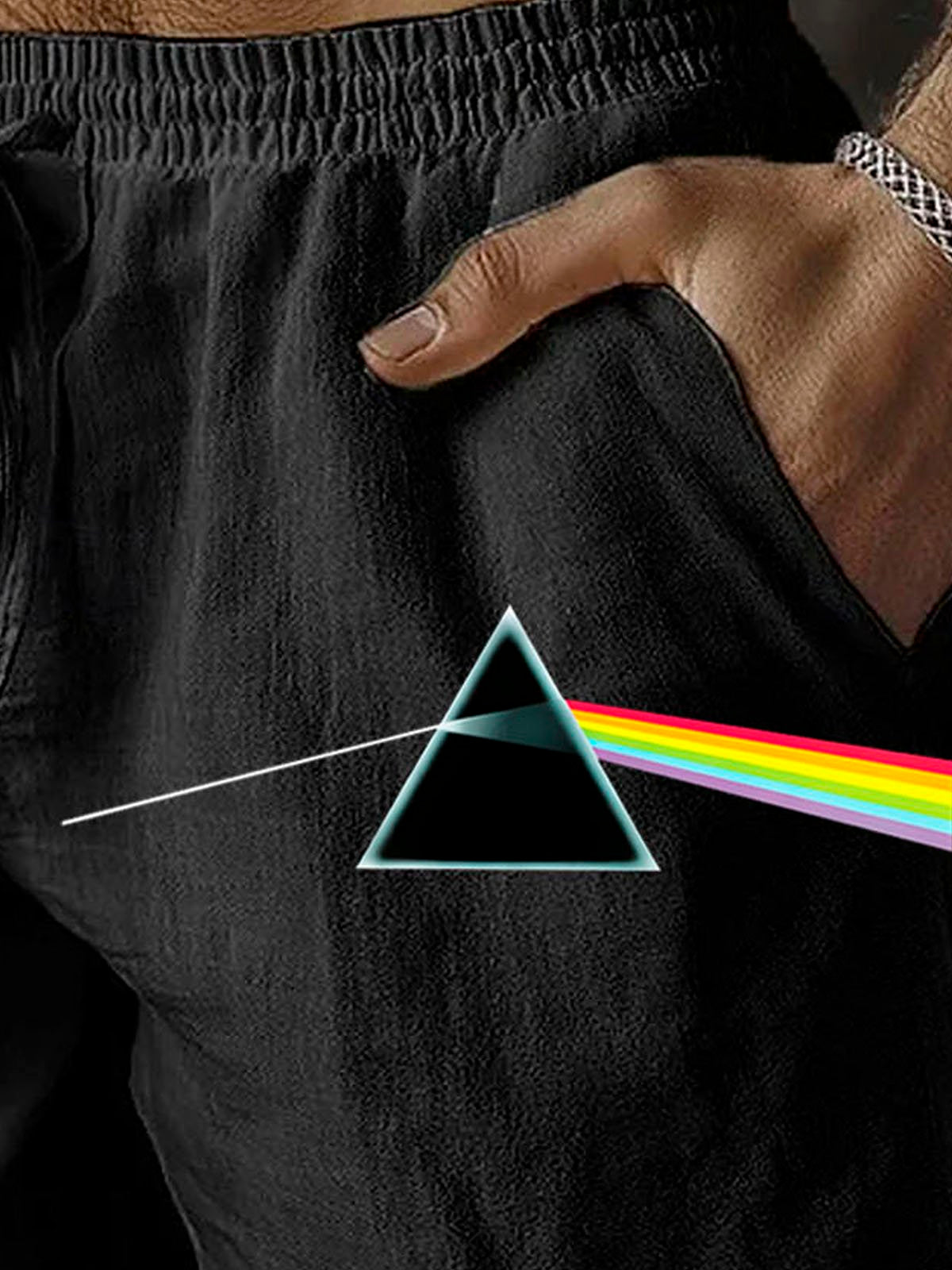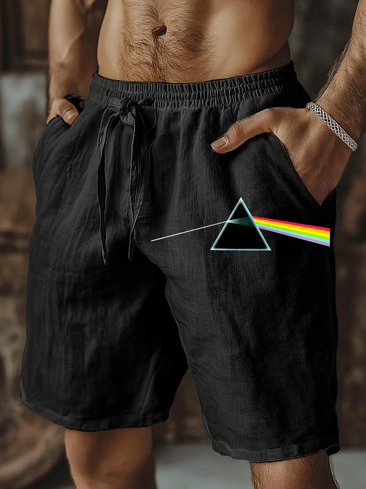 Alohadaddy® Retro Rock Music Rainbow Print Men's Drawstring Shorts Big & Tall