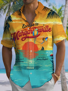 Alohadaddy Beach Coconut Tree Parrot Button Pocket Casual Short Sleeve Shirt