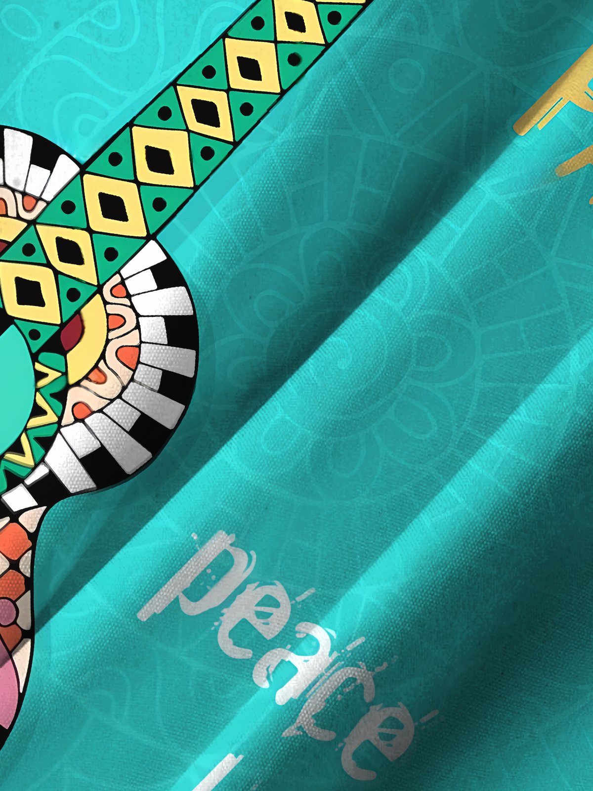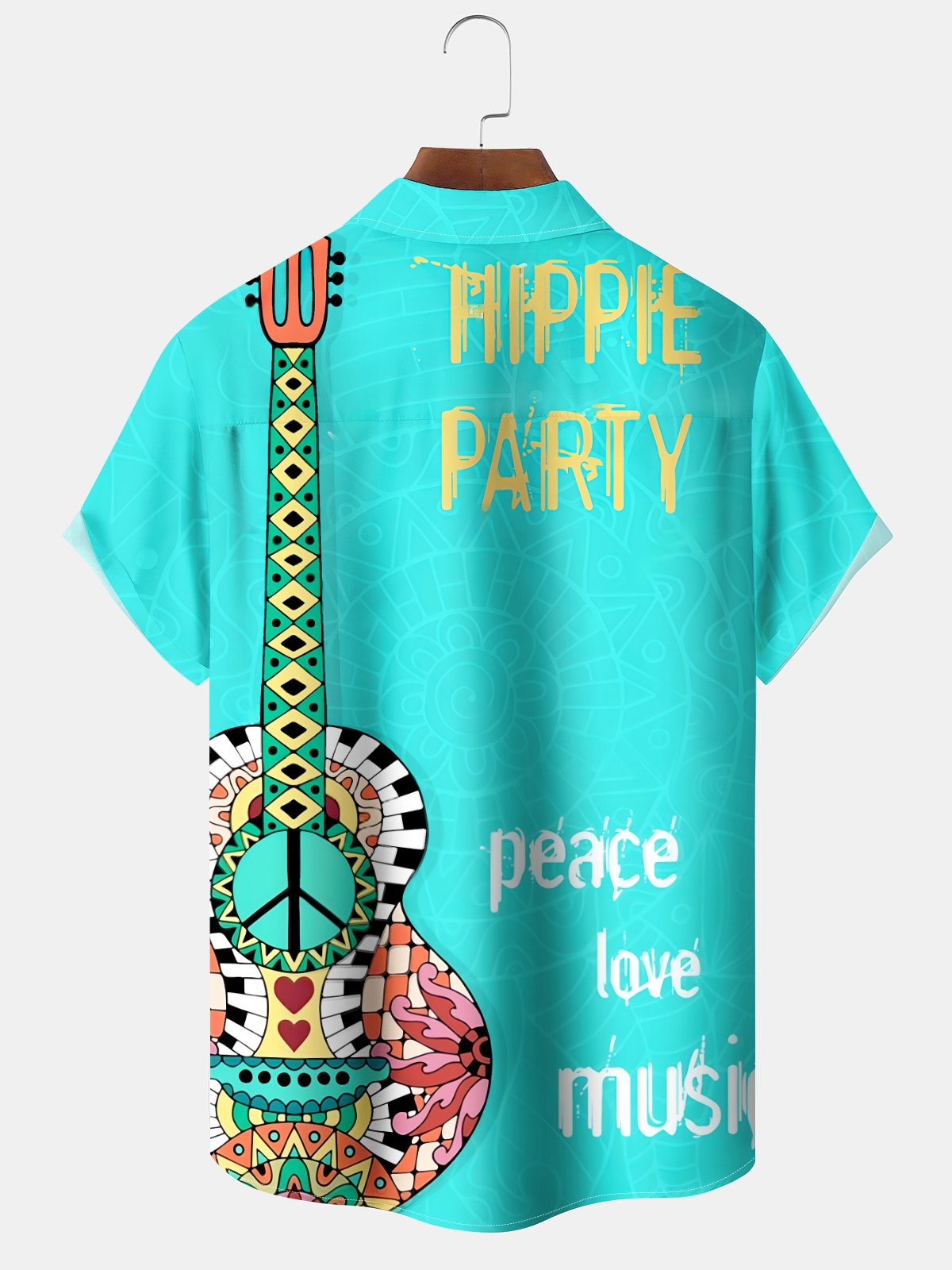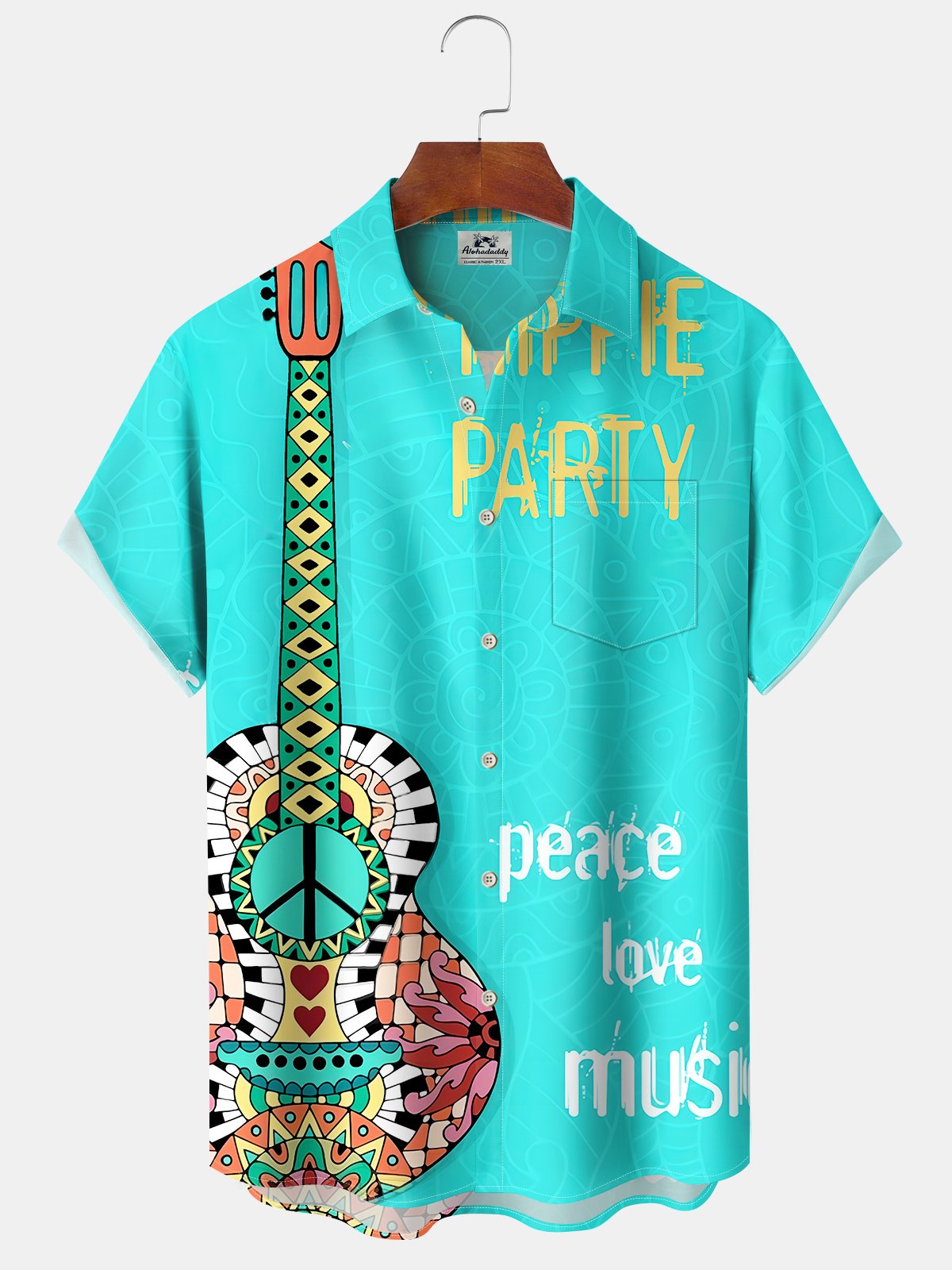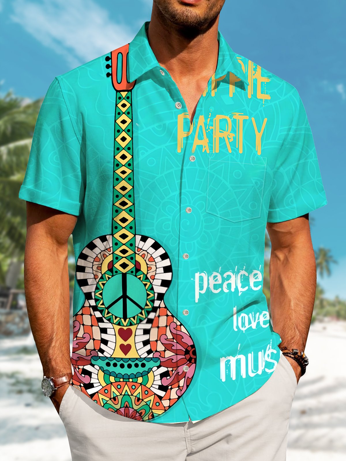 Alohadaddy Casual Collection Music Guitar Party Print Art Button Cardigan Pocket Elastic Oversized Short Sleeve Shirt