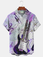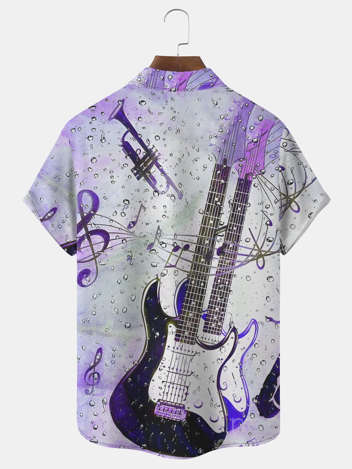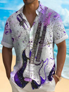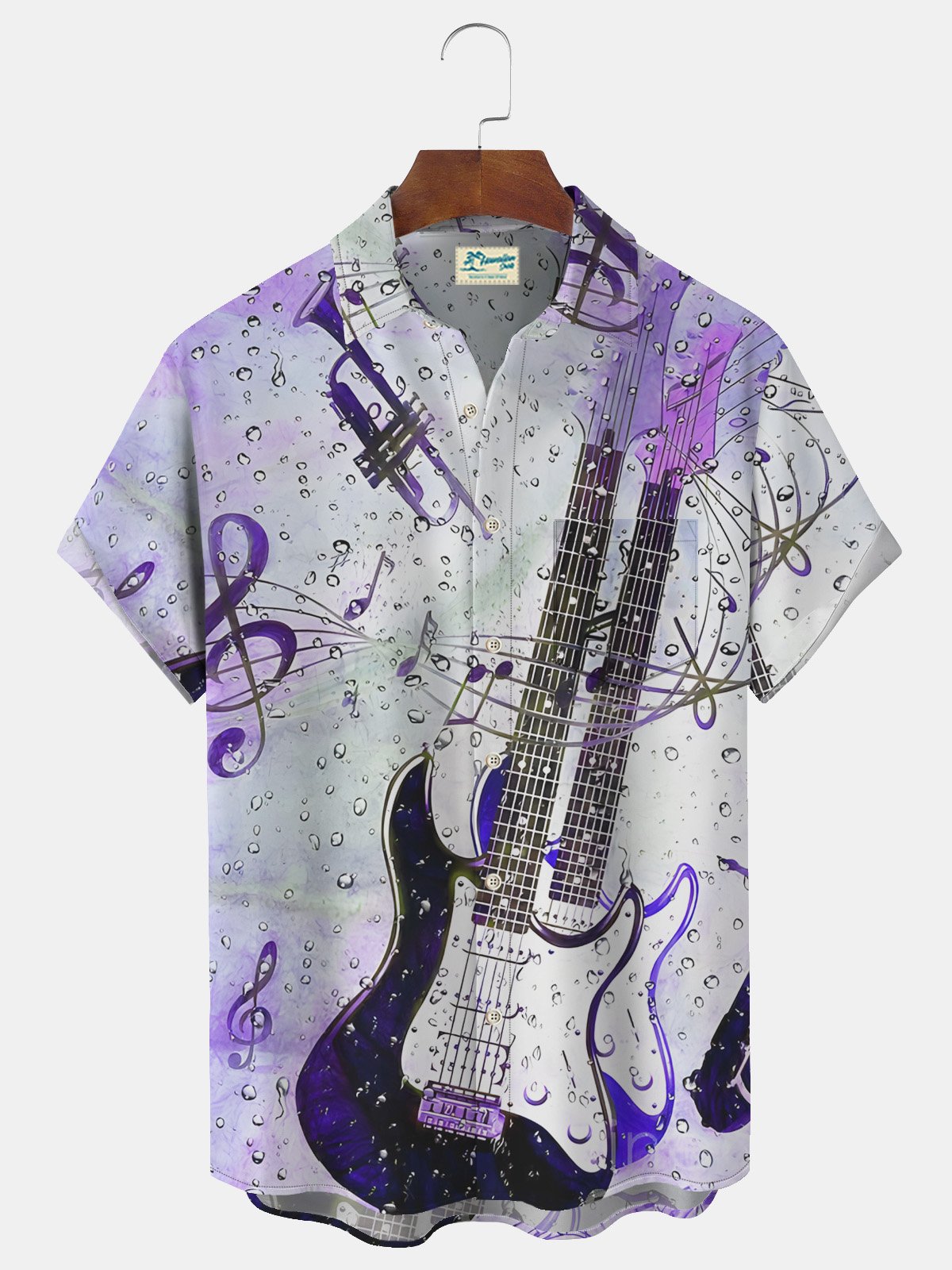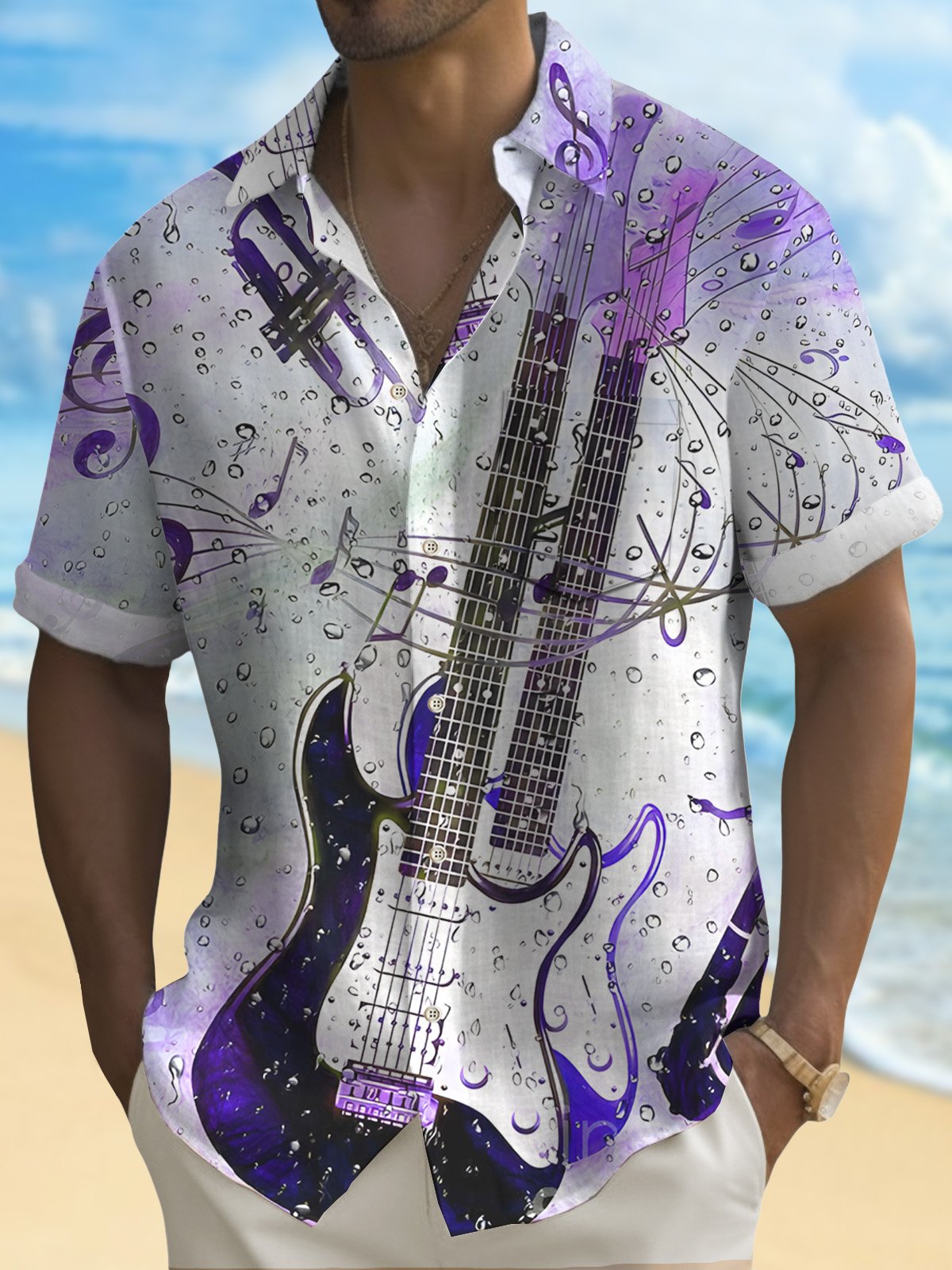 Alohadaddy Guitar Print Men's Hawaiian Shirt Stretch Plus Size Aloha Camp Pocket Button-Down Shirt