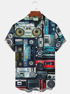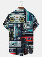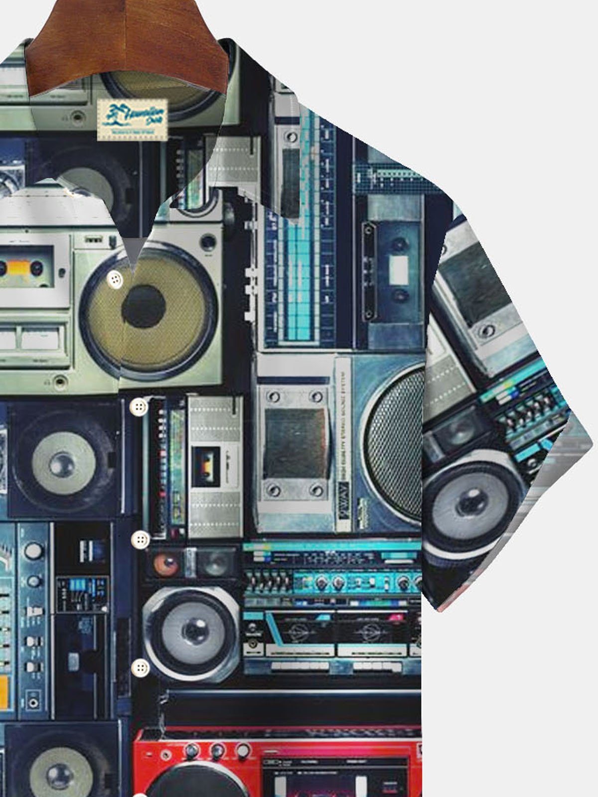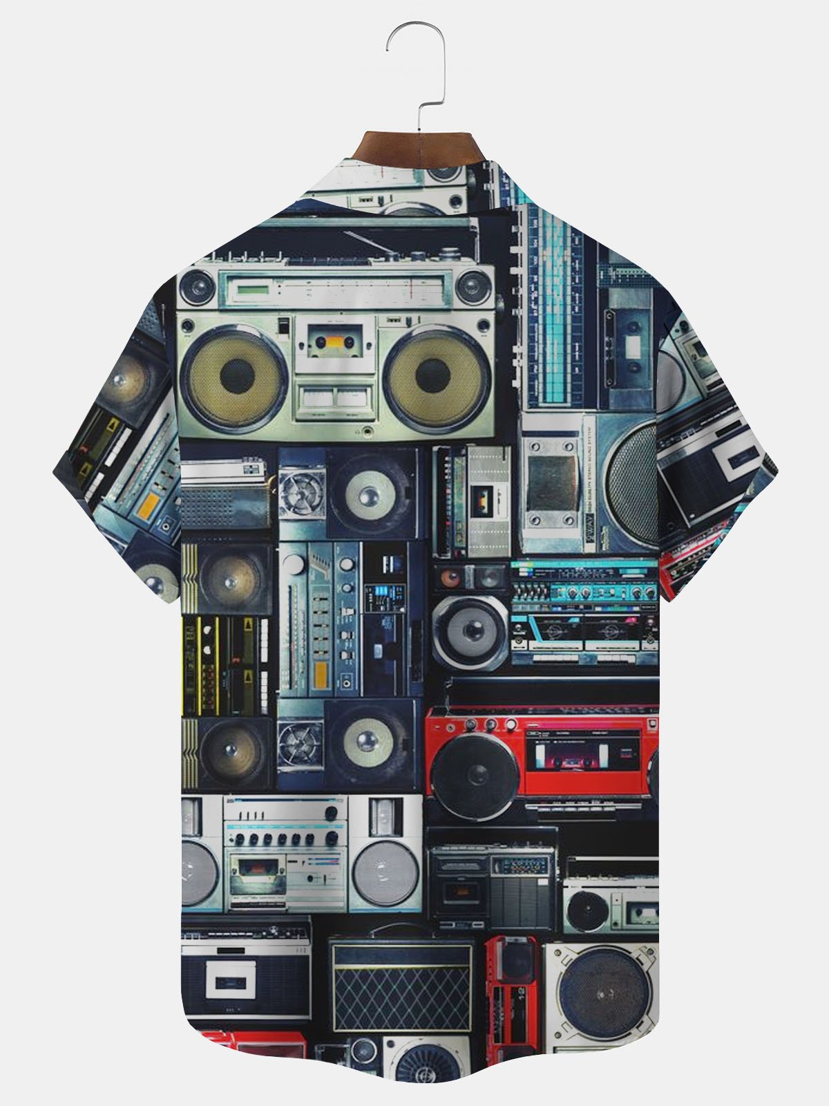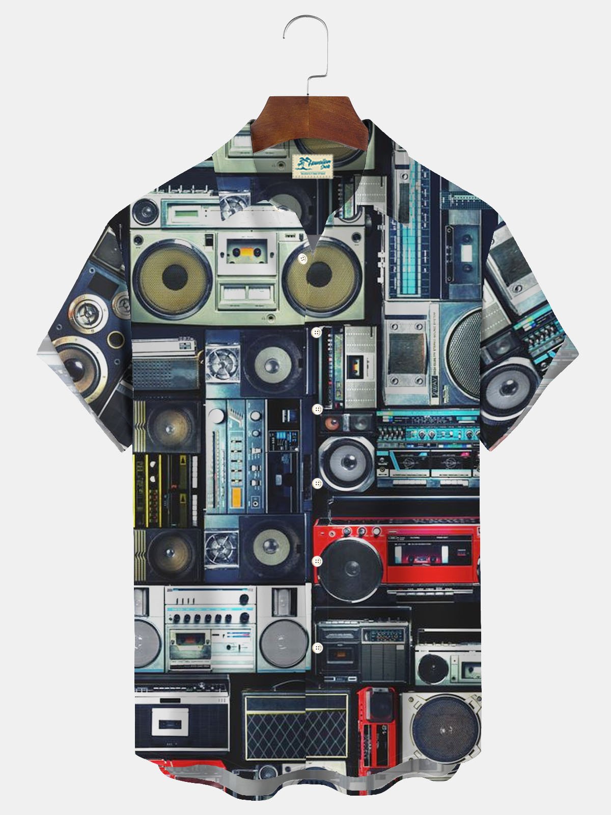 Alohadaddy Men's Retro Music Speaker Print Button Pocket Short Sleeve Shirt