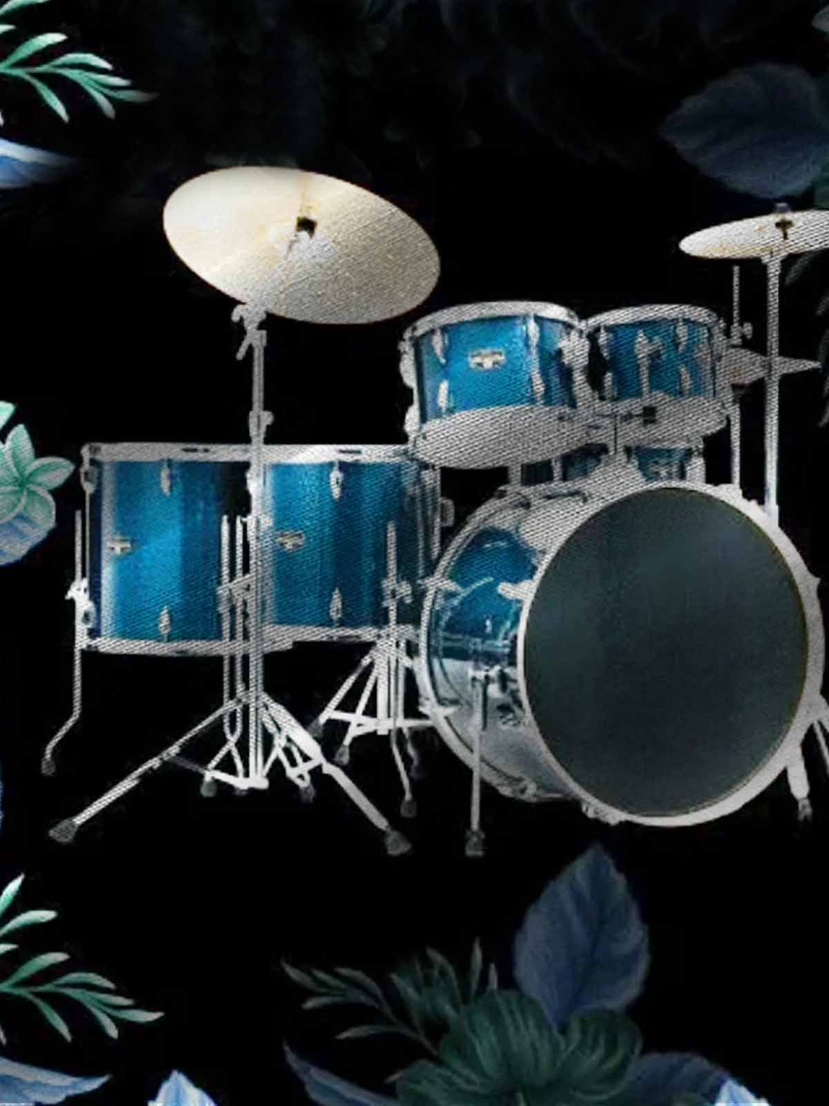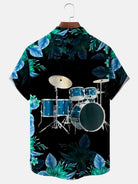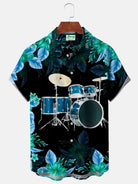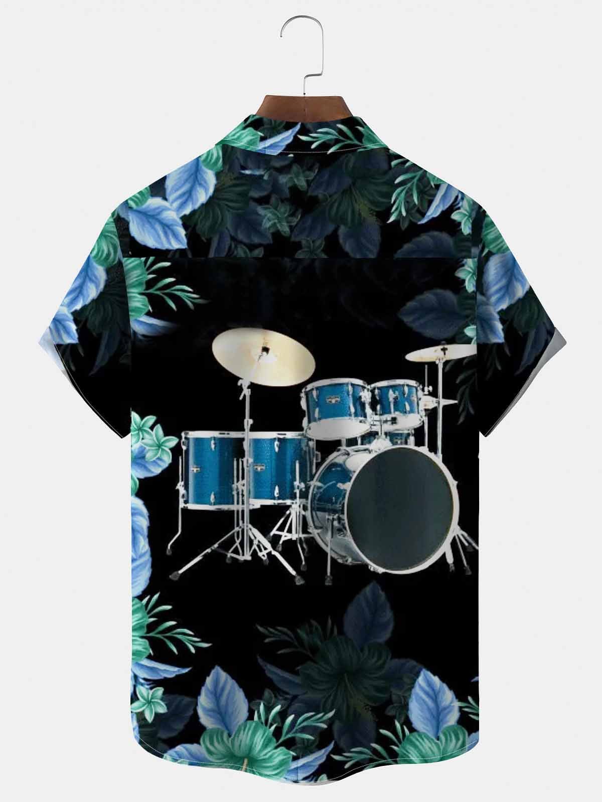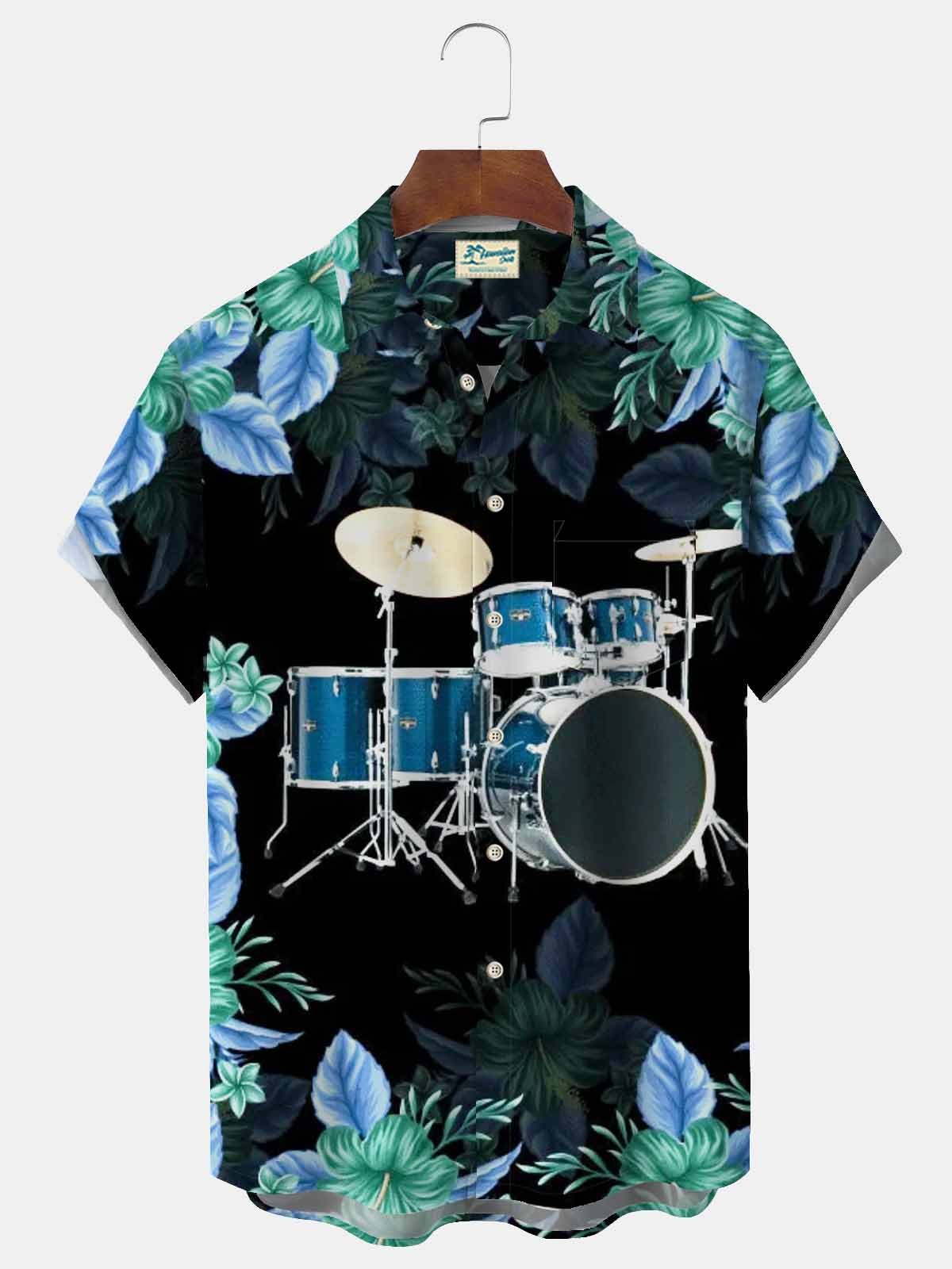 Alohadaddy Music Hawaiian Floral Instruments Drum Kit Men's Button Pocket Shirts