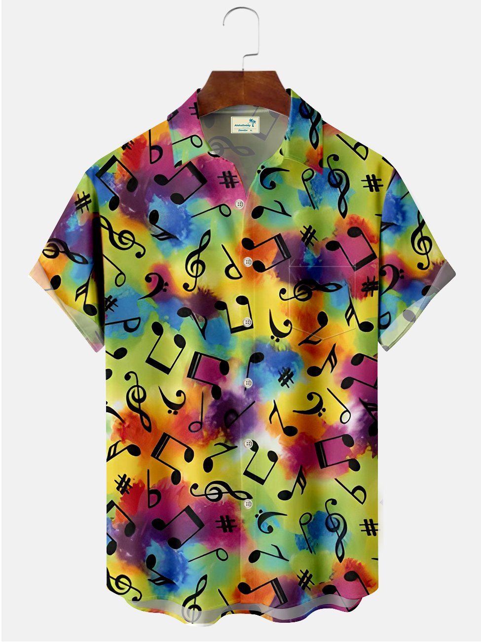 Alohadaddy Music Note Ombre Printed Casual Plus Size Shirts
